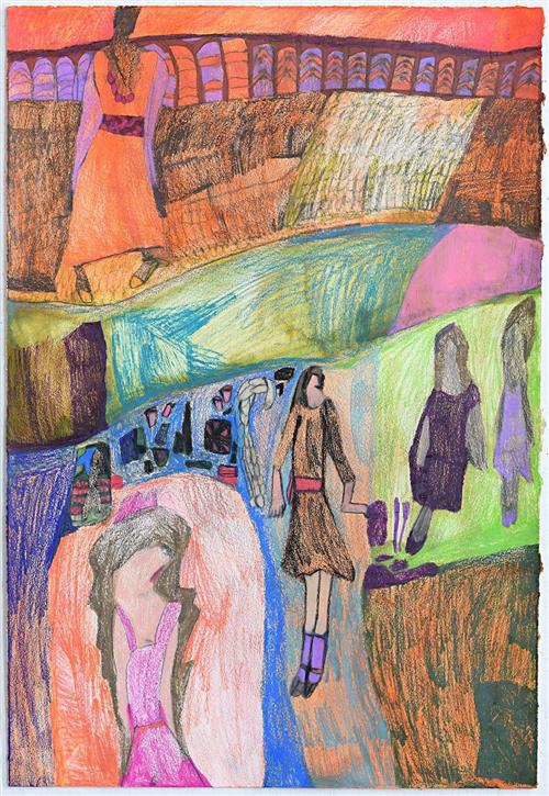 Emily Dober is a painter and illustrator whose figurative works focus on the feminine form as portrayed in magazines and advertisements. Working from a gently drawn pencil or ink outline, her strong sense of composition and carefully considered layers of colour give the works a distinctive, highly personalised style. One of her main concerns is analysing the movements and gestures of the female body in dance. While these works appear as abstract studies, they are also spontaneous, carefree and joyous.