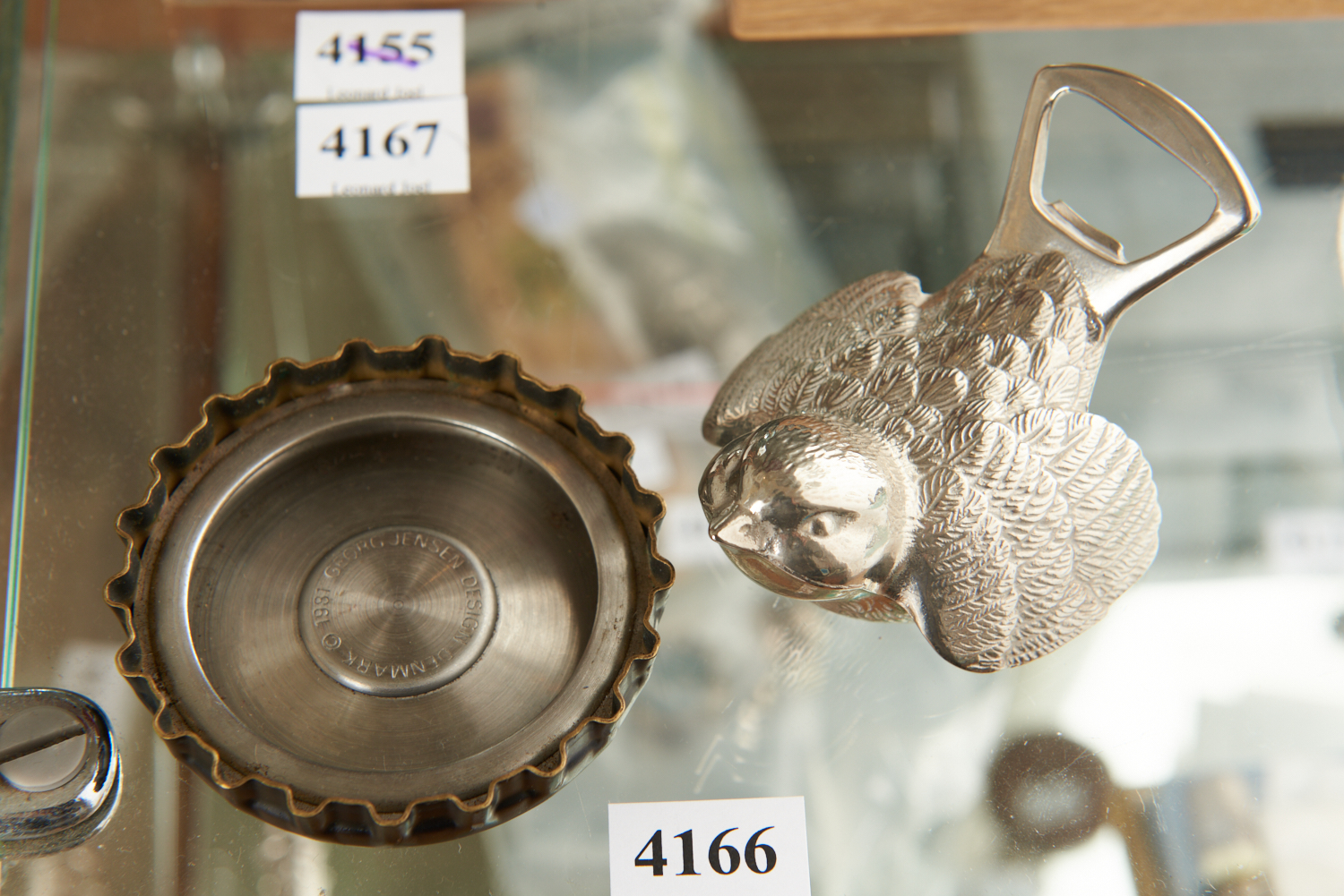 TWO BOTTLE OPENERS, ONE GERMAN METAL MODELLED AS A BIRD AND A GEORG JENSEN BOTTLE OPENER, LEONARD JOEL LOCAL DELIVERY SIZE: SMALL
