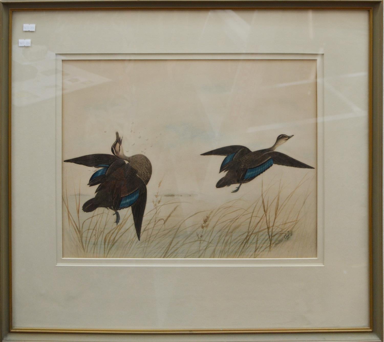 NEVILLE CAYLEY, SHOT DUCK WATERCOLOUR, SIGNED LOWER RIGHT, 36CM X 46.5CM, FRAME SIZE: 62 X 70CM, CONDITION: DISCOLOURATION BUT OTHERWISE VERY GOOD, LEONARD JOEL DELIVERY SIZE: MEDIUM