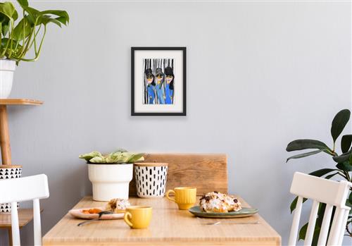 Sammi-Jo Matta is an emerging artist who uses a range of mediums in her work, from acrylic paints through to compressed charcoal. Often referencing advertisements, pop culture and everyday life, she approaches her practice with confident fluid lines and brilliant colours. The proportions of her figures are of interest and are elongated to fill the proportions of the page.
