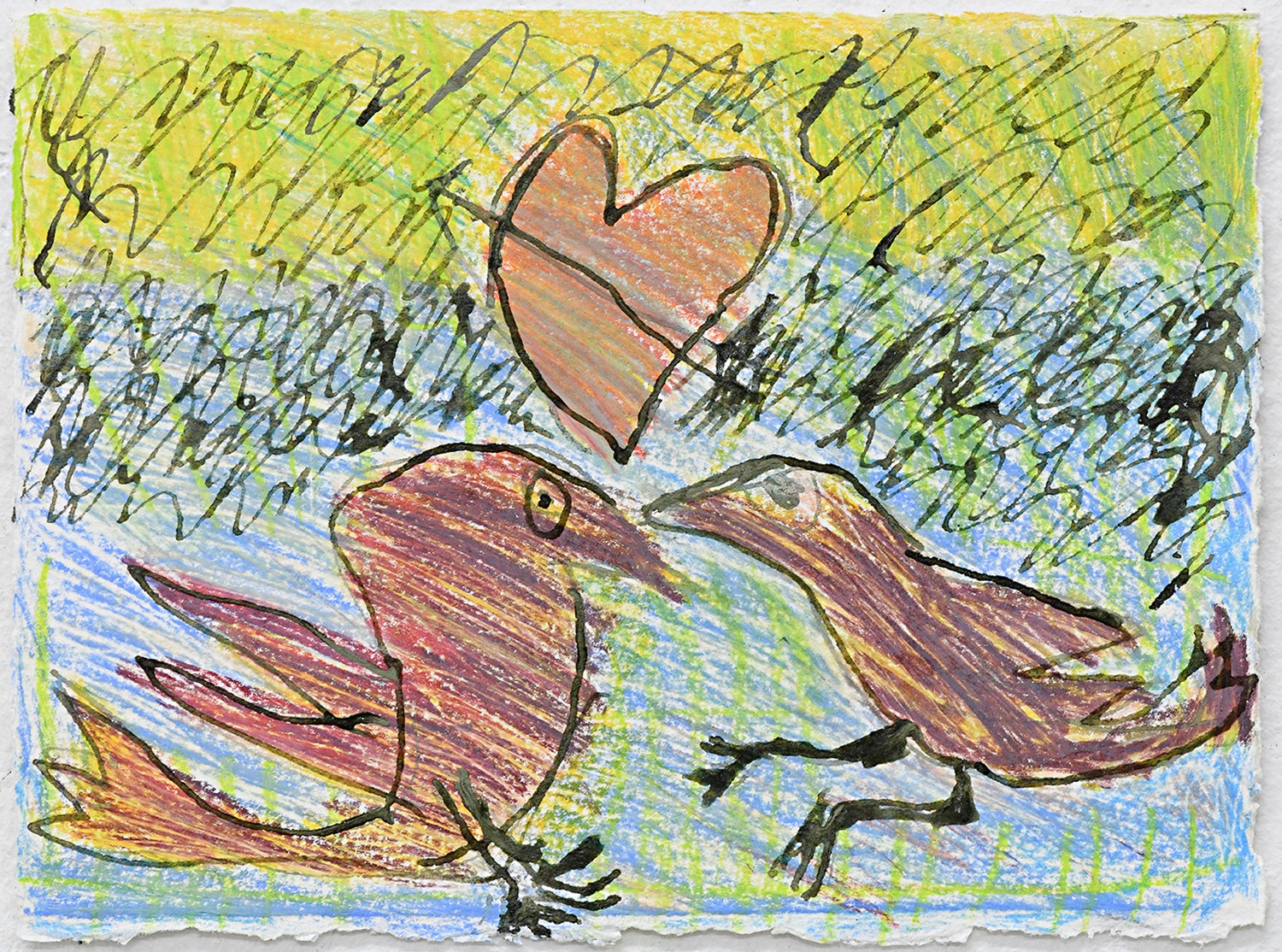This drawing by Nguyen is overwhelmingly sweet, the bird on left seemingly slightly more cautious of the intensely romantic moment they seem to find themselves in.