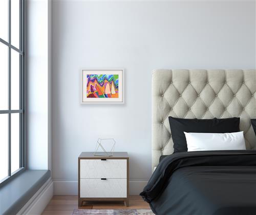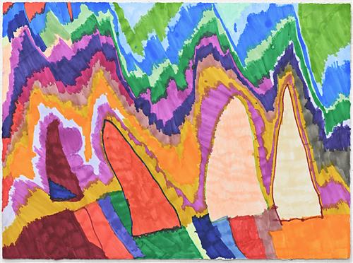 The Mount Fuji is part of the series inspired by Scibilia's travels to Japan. The abstracted, interpretation in technicolour marker is full of movement and fearless personality.