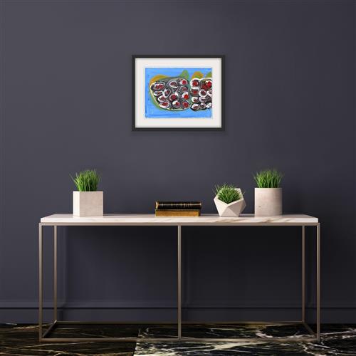 Michael Trasancos preferred medium is acrylic paint and he frequently portrays a fascination with Australian culture, often drawing from souvenir calendars. Trasancos' subject matter often features Australian landscapes, native animals and Australian football. His playful, brightly coloured paintings are expressive in style and sometimes incorporate text.