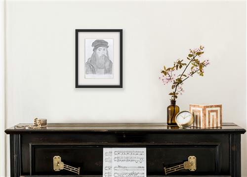 This formal piece by Jake Tynan is rendered in soft greylead, reminiscent of a preliminary sketch for a renaissance portrait.
