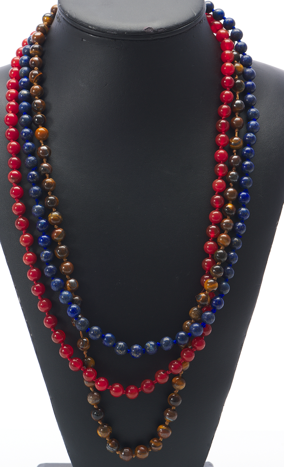THREE STRANDS OF BEADS INCLUDING LAPIS LAZULI, CARNELIAN AND TIGER'S EYE