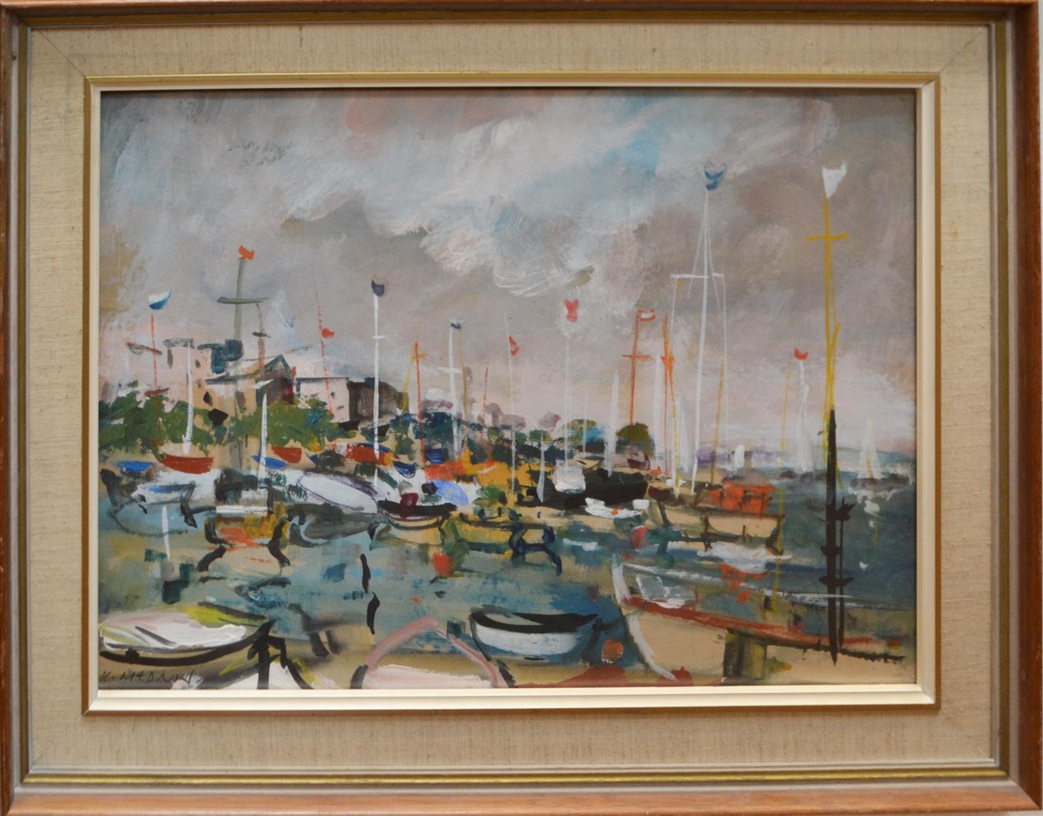 KARLIS MEDNIS, YACHTS - BRIGHTON, WATERCOLOUR AND GOUACHE, 36 X 50CM, FRAME SIZE: 48 X 62CM, LEONARD JOEL DELIVERY SIZE: SMALL