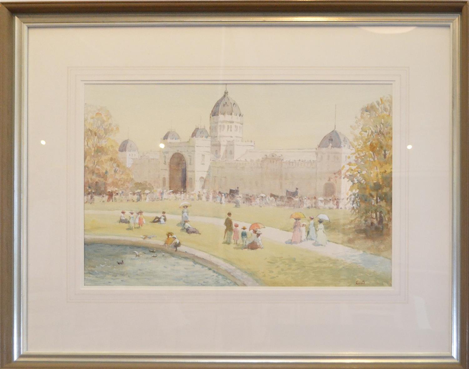GERARD LANTS, EXHIBITION BUILDING, WATERCOLOUR, 48 X 73CM, FRAME SIZE: 87 X 110CM, LEONARD JOEL DELIVERY SIZE: LARGE, CONDITION: VERY GOOD