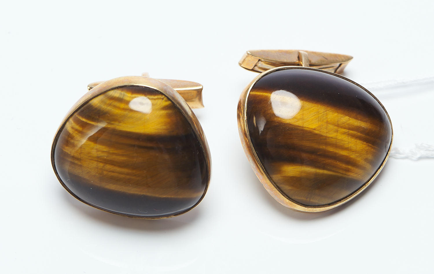A PAIR OF VINTAGE TIGERS EYE CUFFLINKS IN 9CT GOLD