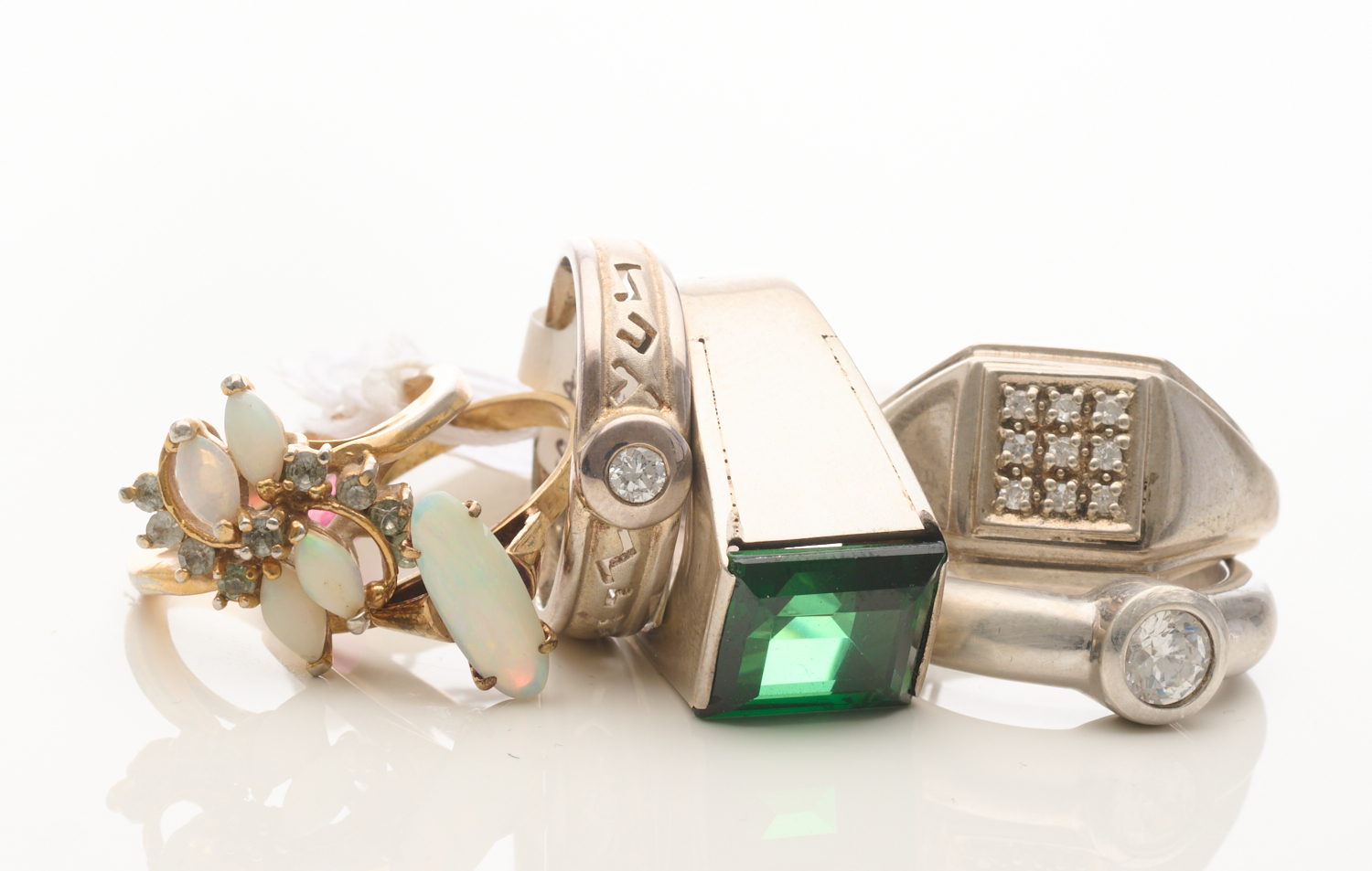 A COLLECTION OF SIX ASSORTED DRESS RINGS, INCLUDING STONE SET AND OPAL SET, IN SILVER AND SILVER GILT