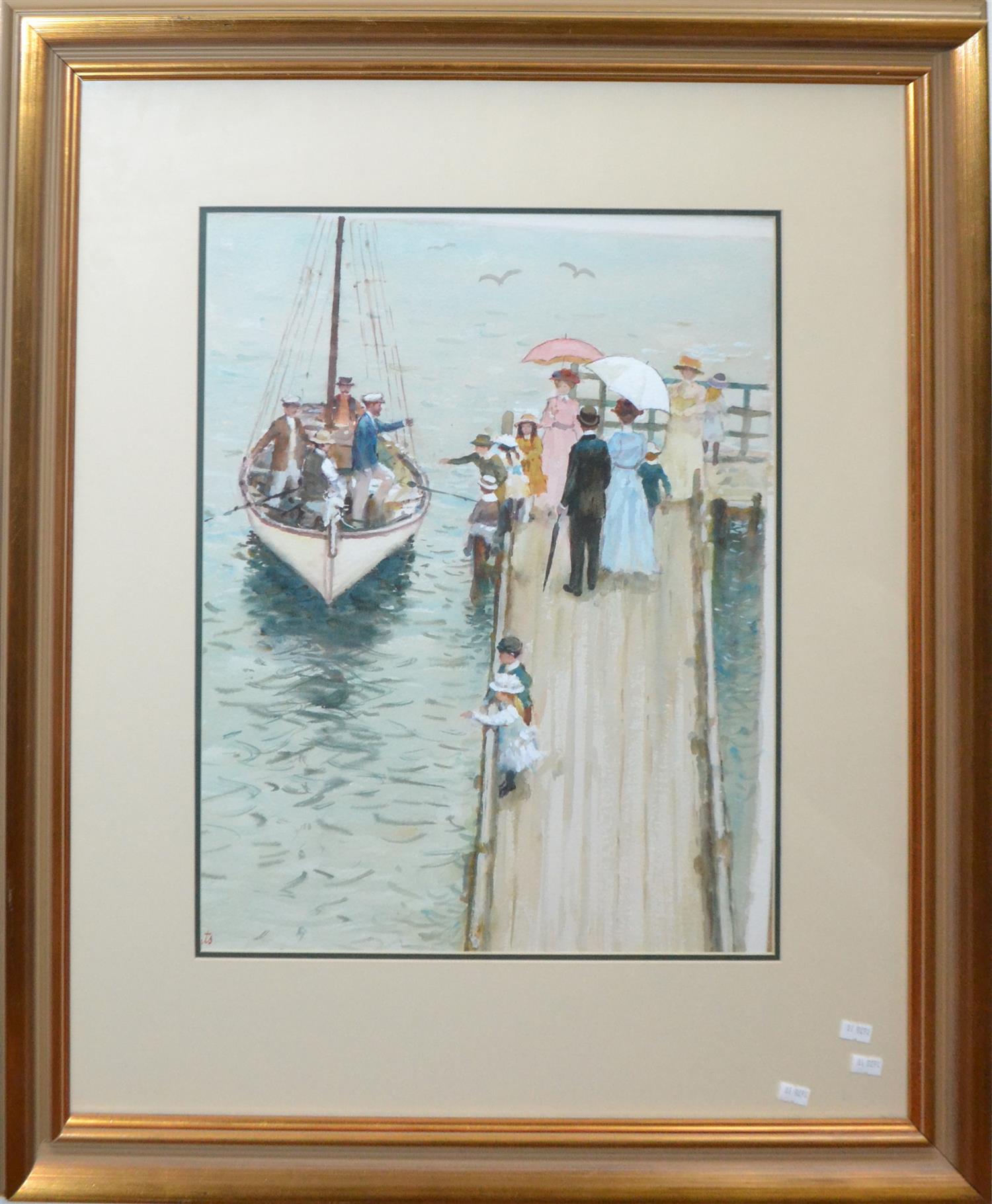 GERARD LANTS, FIGURES ON THE WATERFRONT, WATERCOLOUR, 52 X 42CM (WORK HAS SLIPPED IN THE FRAME SLIGHTLY), FRAME SIZE: 85 X 72CM, LEONARD JOEL DELIVERY SIZE: MEDIUM