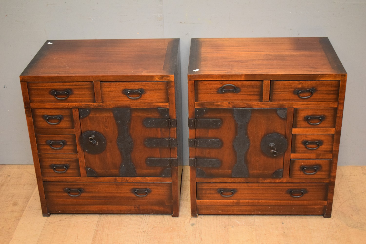 A PAIR OF JAPANESE STYLE TANSU BEDSIDES (64H X 57W X 41D CM) (LEONARD JOEL DELIVERY SIZE: LARGE)