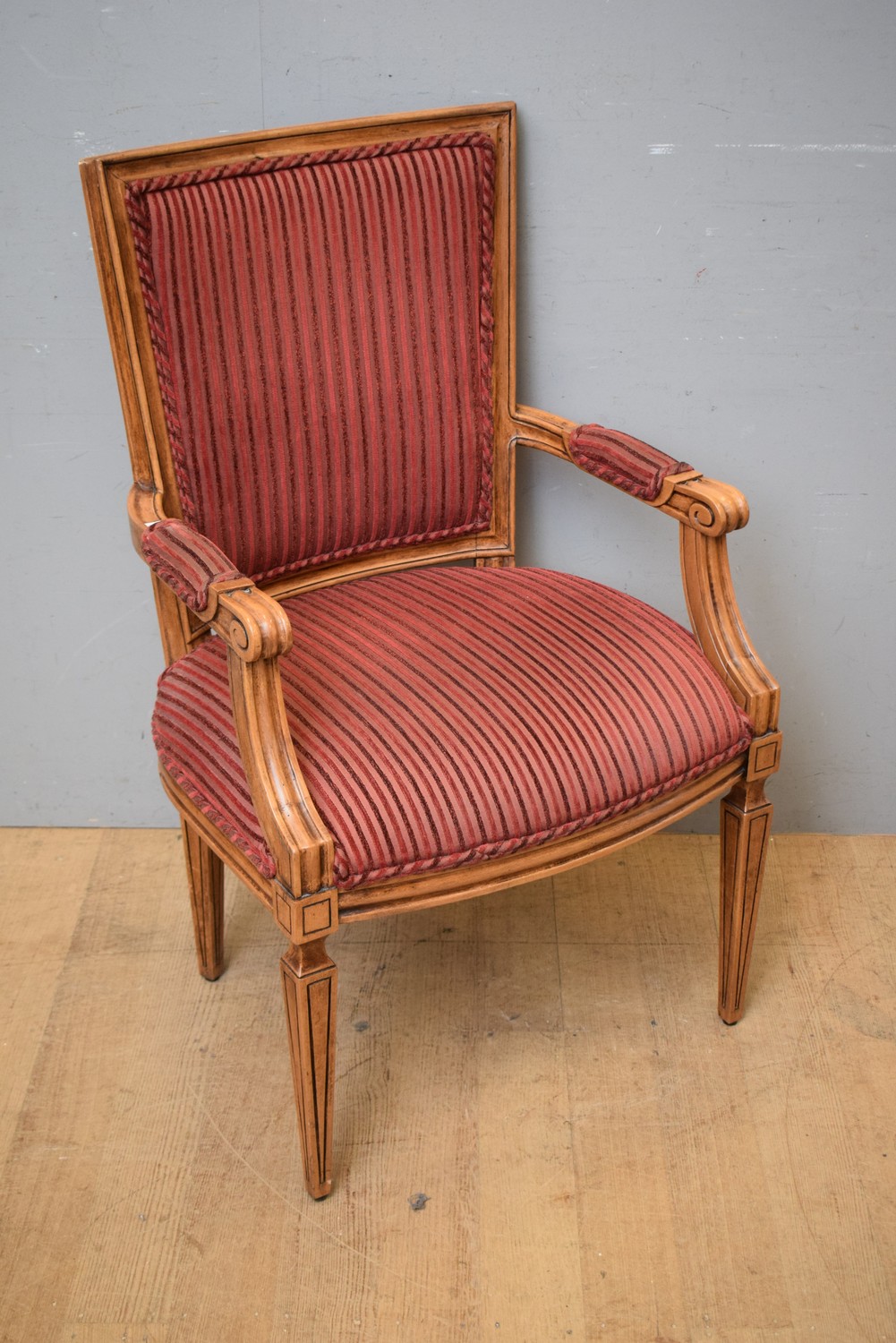 A FRENCH PROVINCIAL STYLE ARMCHAIR (105H X 63W X 62D CM) (LEONARD JOEL DELIVERY SIZE: LARGE)
