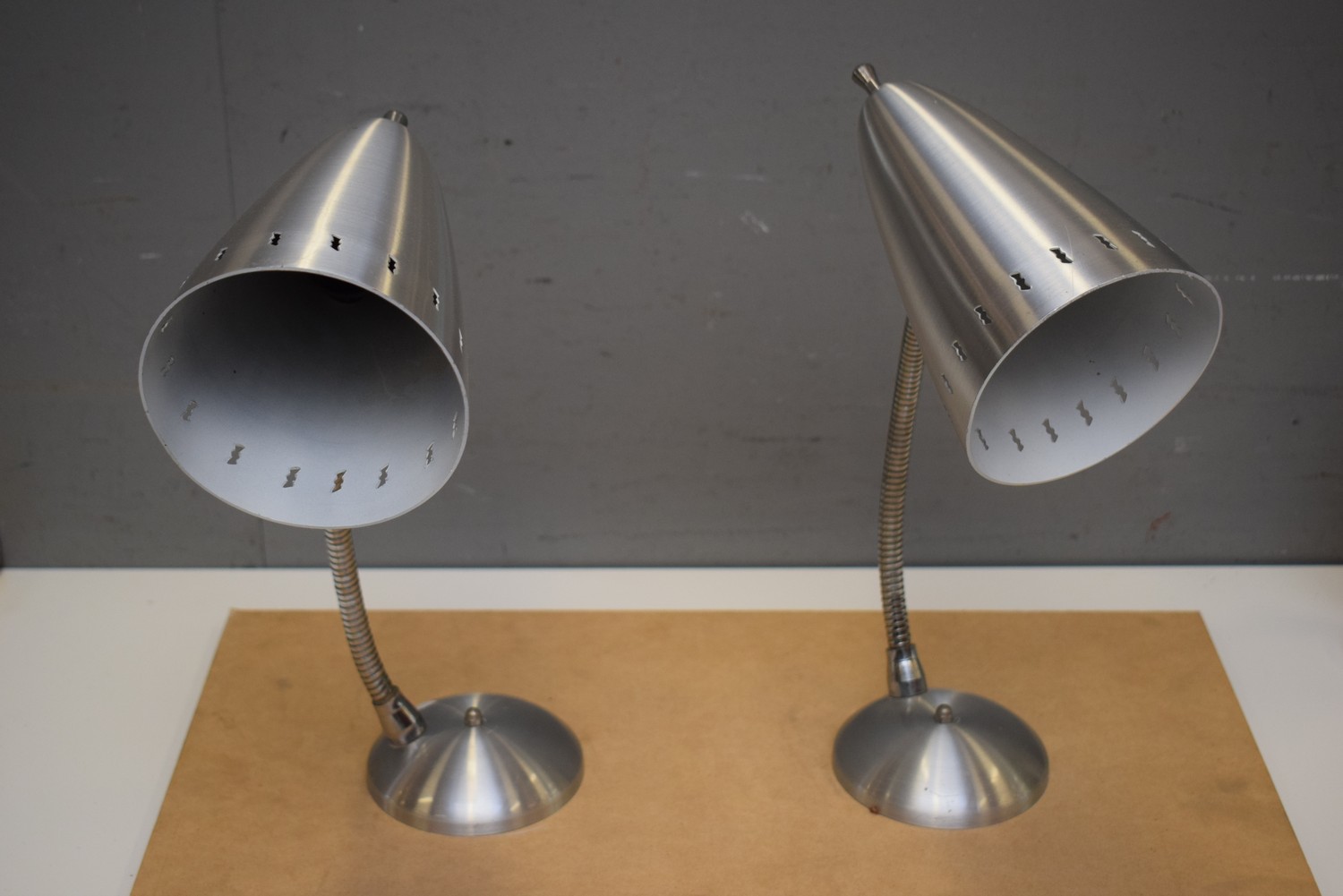 A PAIR OF ALUMINIUM GOOSENECK WALL LAMPS (37H CM) (LEONARD JOEL DELIVERY SIZE: SMALL)