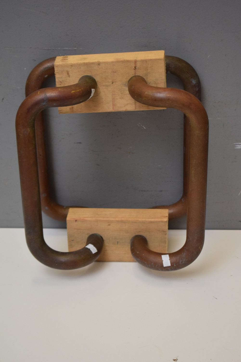 A PAIR OF BRASS DOOR HANDLES IN NATURAL PATINA ( 32H X 13W CM ) (LEONARD JOEL DELIVERY SIZE: SMALL)