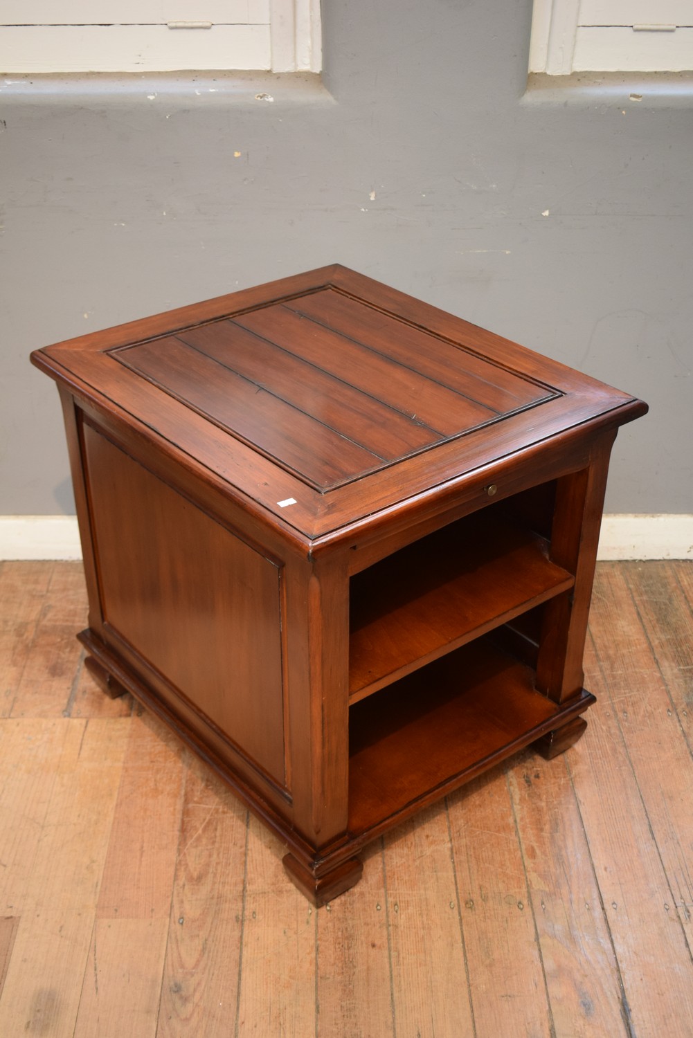 A TIMBER SIDE TABLE (H67 X W62 X D72 CM) (PLEASE NOTE THIS HEAVY ITEM MUST BE REMOVED BY CARRIERS AT THE CUSTOMER'S EXPENSE. LEONARD JOEL STAFF CANNOT ASSIST CARRYING THIS ITEM)
