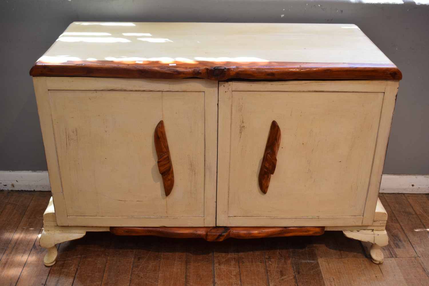 AN AUSTRALIAN RUSTIC TIMBER SIDEBOARD (A/F) (H86 X W141 X D54 CM) (PLEASE NOTE THIS HEAVY ITEM MUST BE REMOVED BY CARRIERS AT THE CUSTOMER'S EXPENSE. LEONARD JOEL STAFF CANNOT ASSIST CARRYING THIS ITEM)