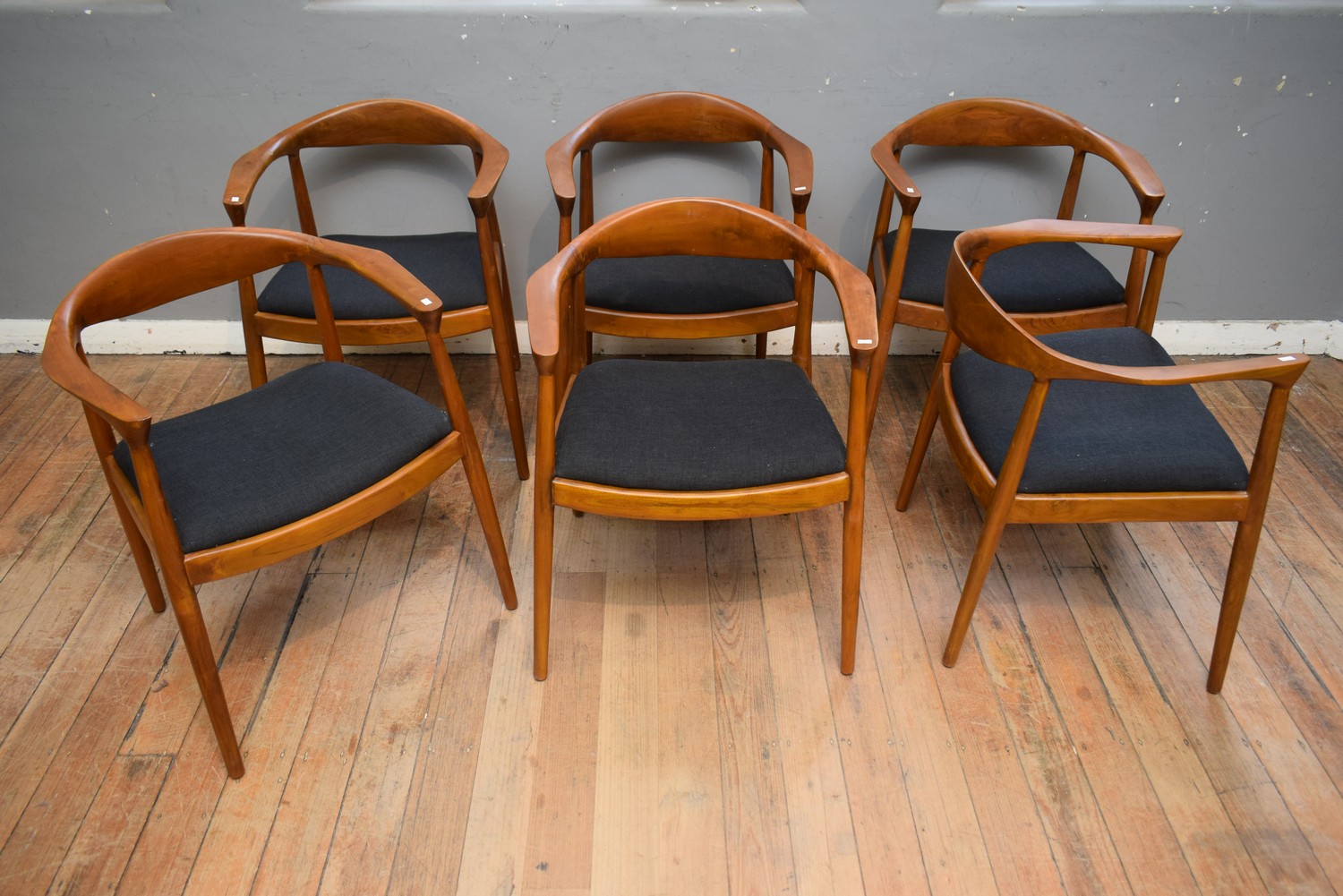 SIX TEAK MID-CENTURY STYLE DINING CHAIRS (H76 X W61 X D53 CM) (LEONARD JOEL DELIVERY SIZE: LARGE)