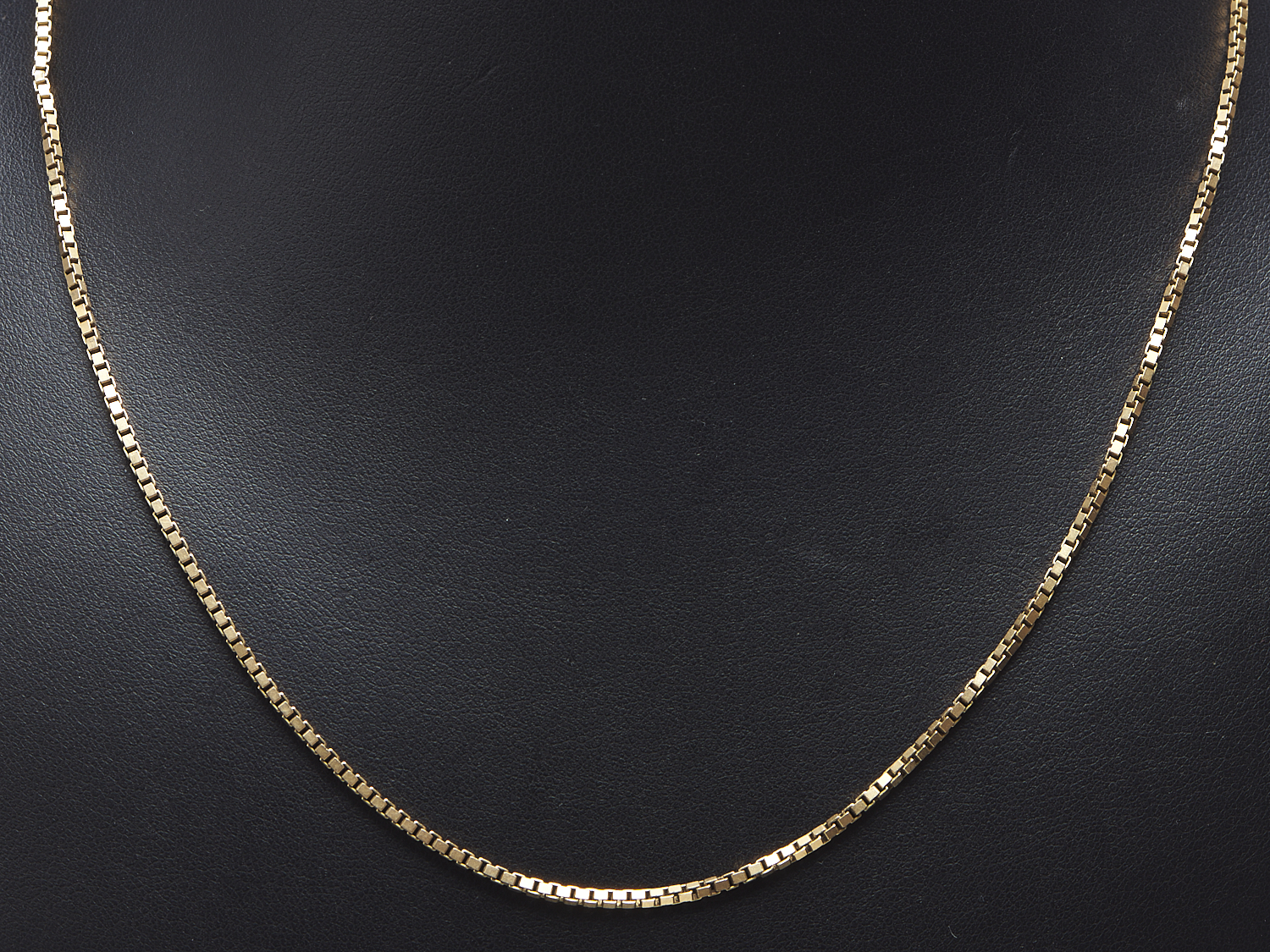 A BOX LINK CHAIN IN 14CT GOLD, LENGTH 49CMS, 9.5GMS