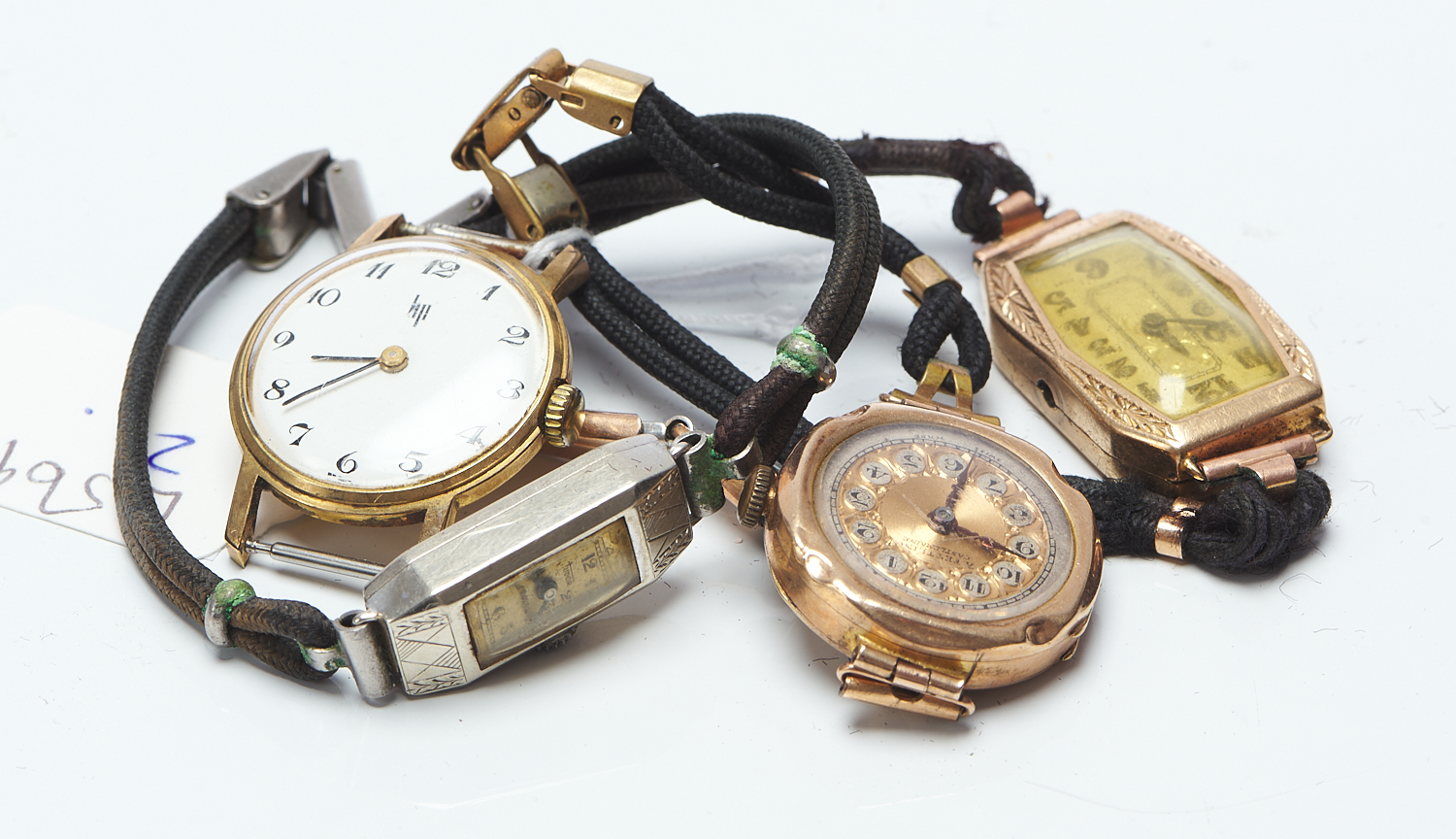 FOUR VINTAGE WRISTWATCHES INCLUDING TWO 9CT GOLD A/F