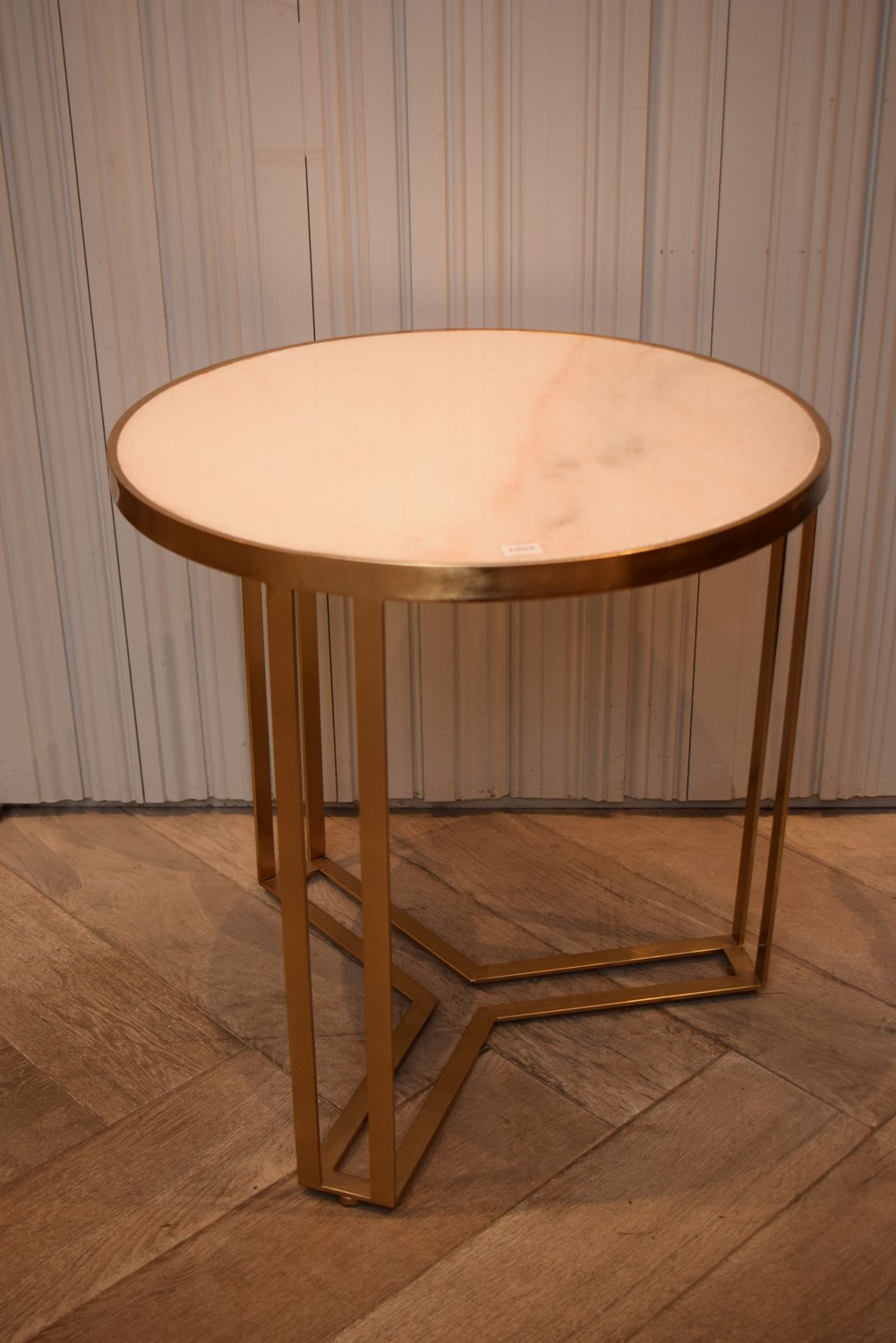 A MARBLE TOPPED SIDE TABLE WITH A BRASS SURROUND (55H x 55d CM) (LEONARD JOEL DELIVERY SIZE: LARGE)
