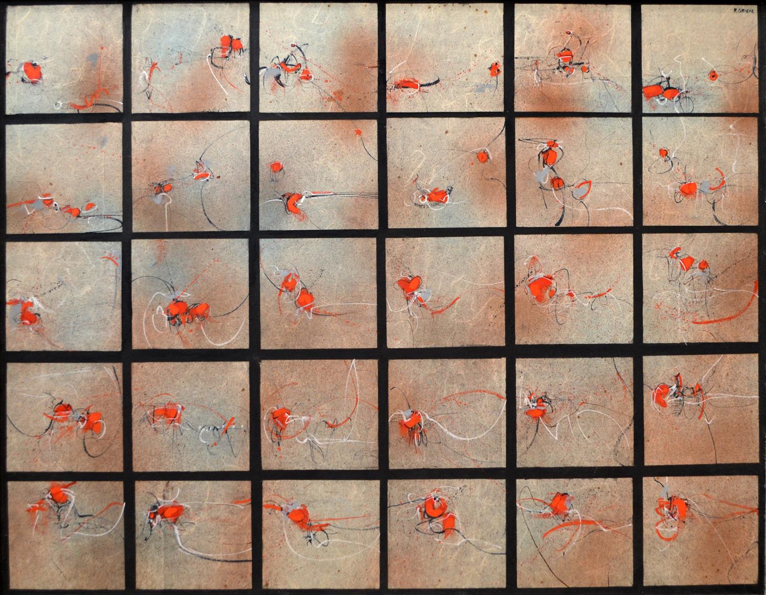 ROBERT GRIEVE, UNTITLED, MIXED MEDIA ON PAPER ON BOARD, SIGNED UPPER RIGHT, TITLED VERSO, 99 X 121CM, FRAME SIZE: 103 X 126CM, CONDITION: BROWN SPOTS OF STAINING AND FOXING SEEN THROUGHOUT, IMPERFECTIONS TO THE SURFACE, PEN MARKS UPPER RIGHT AREA WHICH DO NOT APPEAR TO BE BY THE HAND OF THE ARTIST, LEONARD JOEL DELIVERY SIZE: LARGE