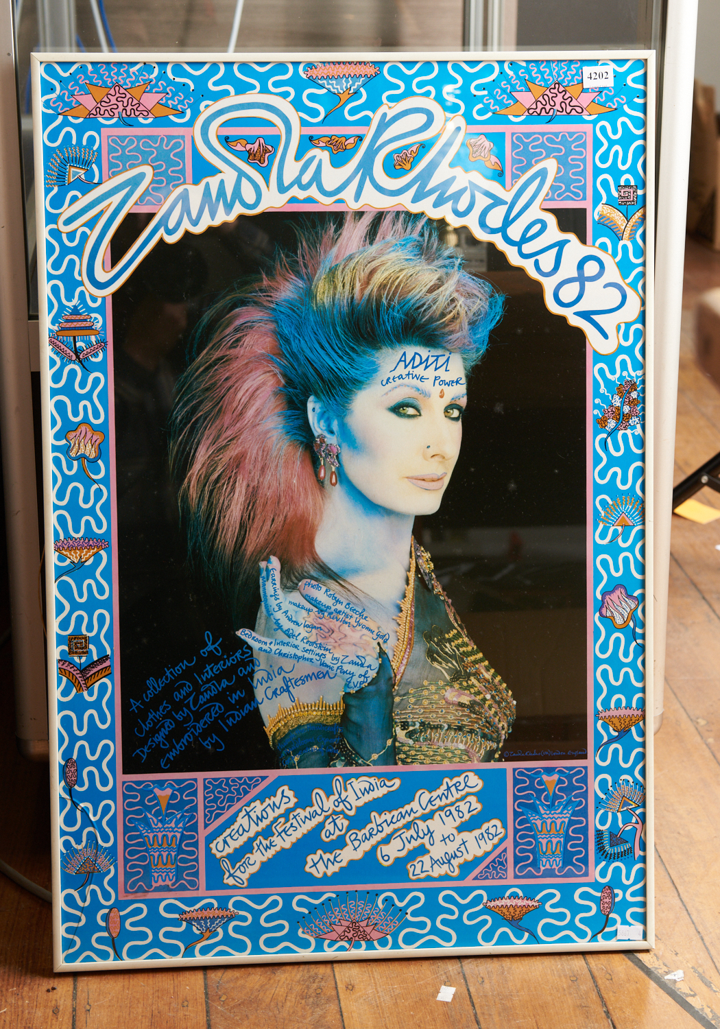 ZANDRA RHODES, ADITI CREATIVE POWER 1982, BARBICAN CENTRE LONDON (A/F TO GLASS), 78 X 52CM, LEONARD JOEL LOCAL DELIVERY SIZE: SMALL