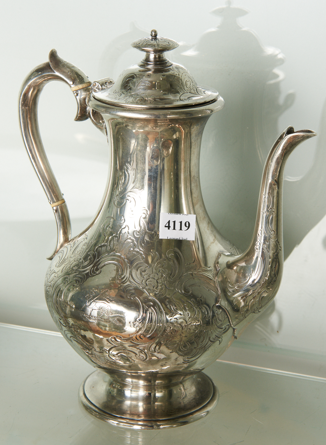 A VICTORIAN STERLING SILVER COFFEE POT, LONDON, 1846, LEONARD JOEL LOCAL DELIVERY SIZE: SMALL