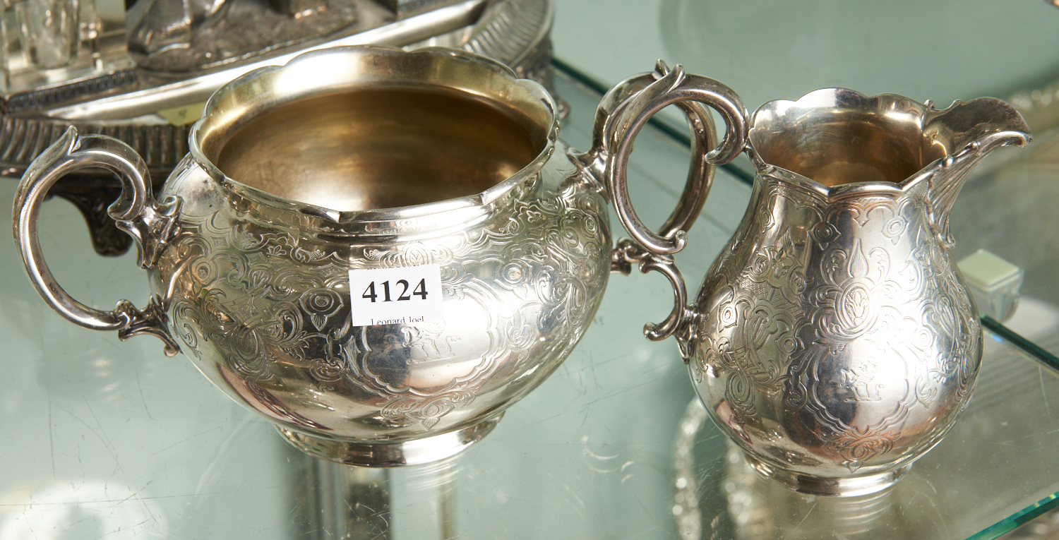 A VICTORIAN STERLING SILVER SUGAR VESSEL AND A CREAMER, LONDON, 1856, LEONARD JOEL LOCAL DELIVERY SIZE: SMALL