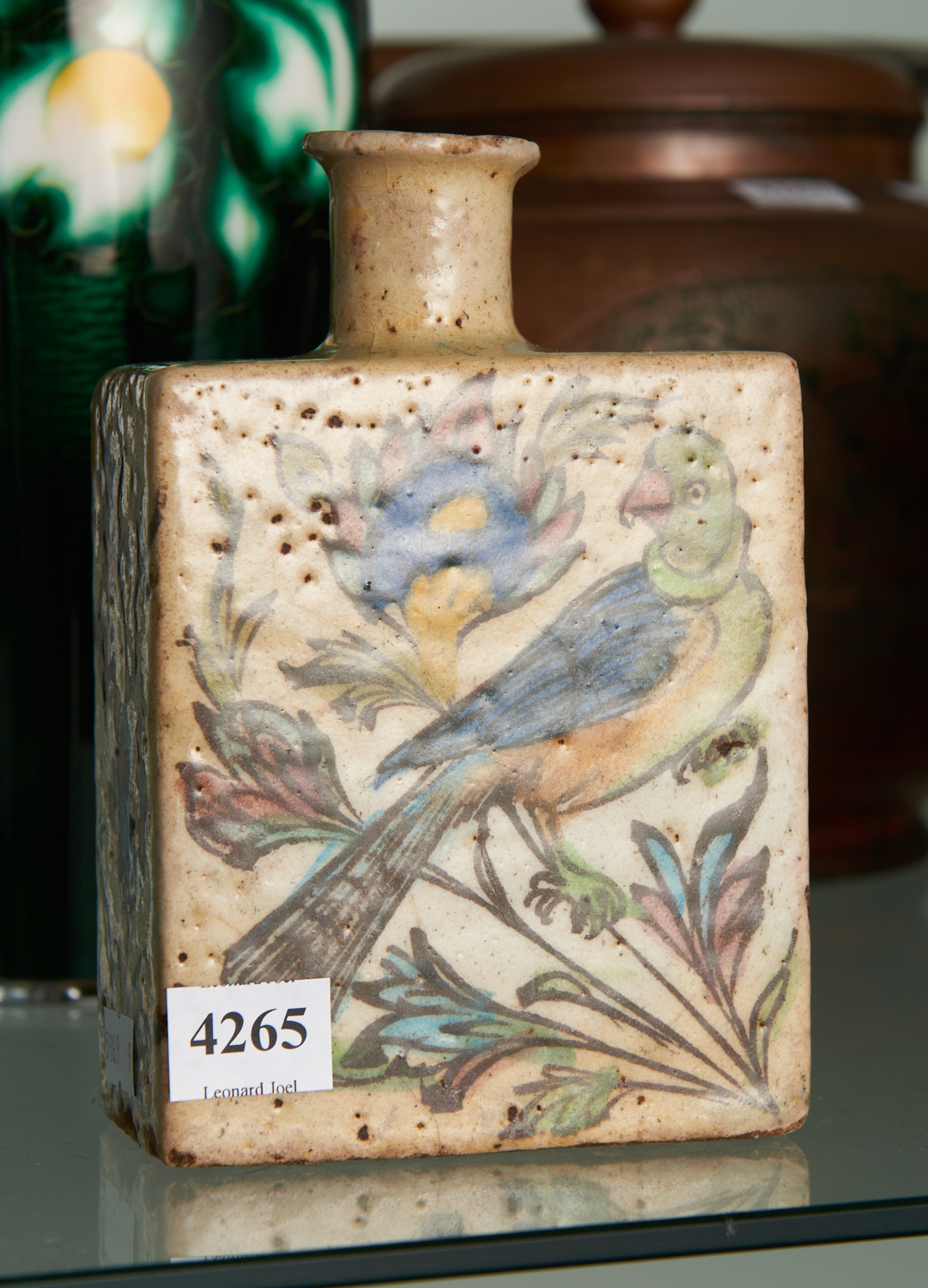 A RECTANGULAR FORM CHINESE BOTTLE VASE WITH PARROT DECORATION, H.16CM, LEONARD JOEL LOCAL DELIVERY SIZE: SMALL