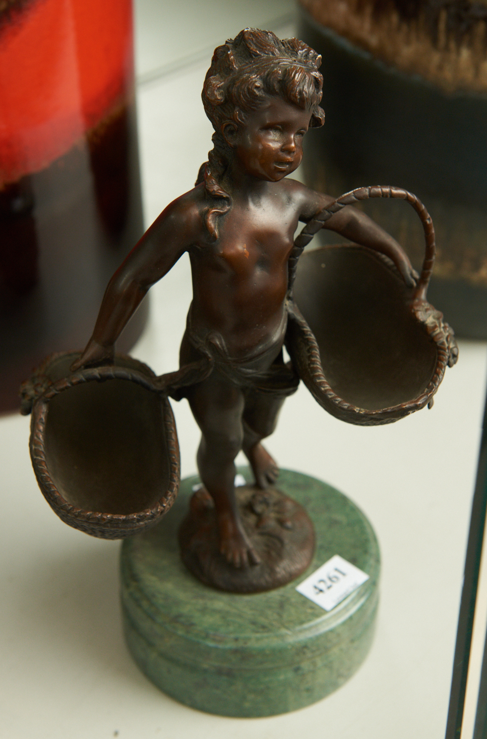 A BRONZE FIGURE OF GIRL WITH BASKETS ON MARBLE BASE, LEONARD JOEL LOCAL DELIVERY SIZE: SMALL