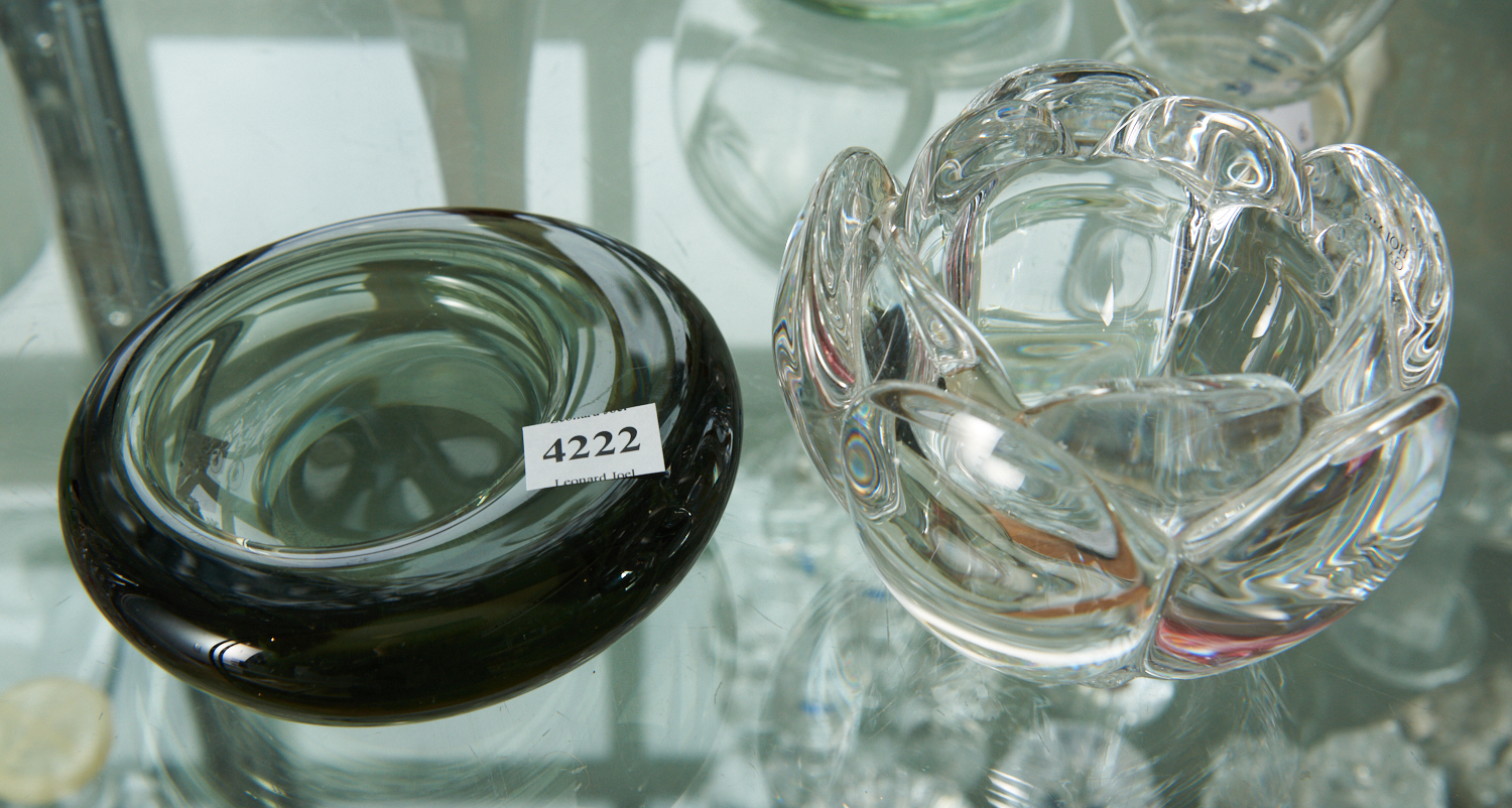 A DANISH HOLMEGAARD TEALIGHT HOLDER BY TORBEN JORGENSEN AND A HOLMEGAARD JELLYFISH BOWL BY PER LUTKIN (9CM HIGH), LEONARD JOEL LOCAL DELIVERY SIZE: SMALL