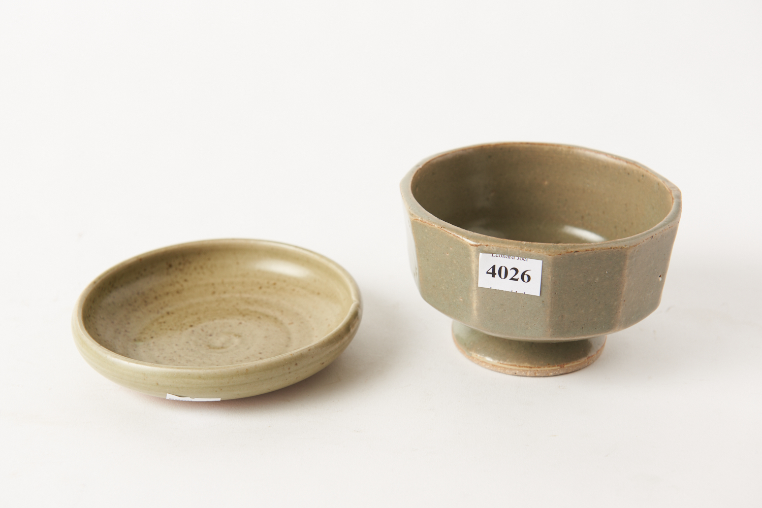 A HAROLD HUGHAN FACETTED BOWL AND A SHALLOW DISH, BOTH SIGNED (12 CM DIAMETER), LEONARD JOEL LOCAL DELIVERY SIZE: SMALL