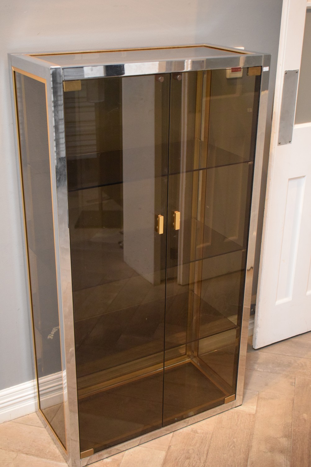 A METAL AND GLASS DISPLAY CABINET (A/F) (140H x 76W x 38D CM) (PLEASE NOTE THIS HEAVY ITEM MUST BE REMOVED BY CARRIERS AT THE CUSTOMER'S EXPENSE. LEONARD JOEL STAFF CANNOT ASSIST CARRYING THIS ITEM) (X-LARGE ITEM)