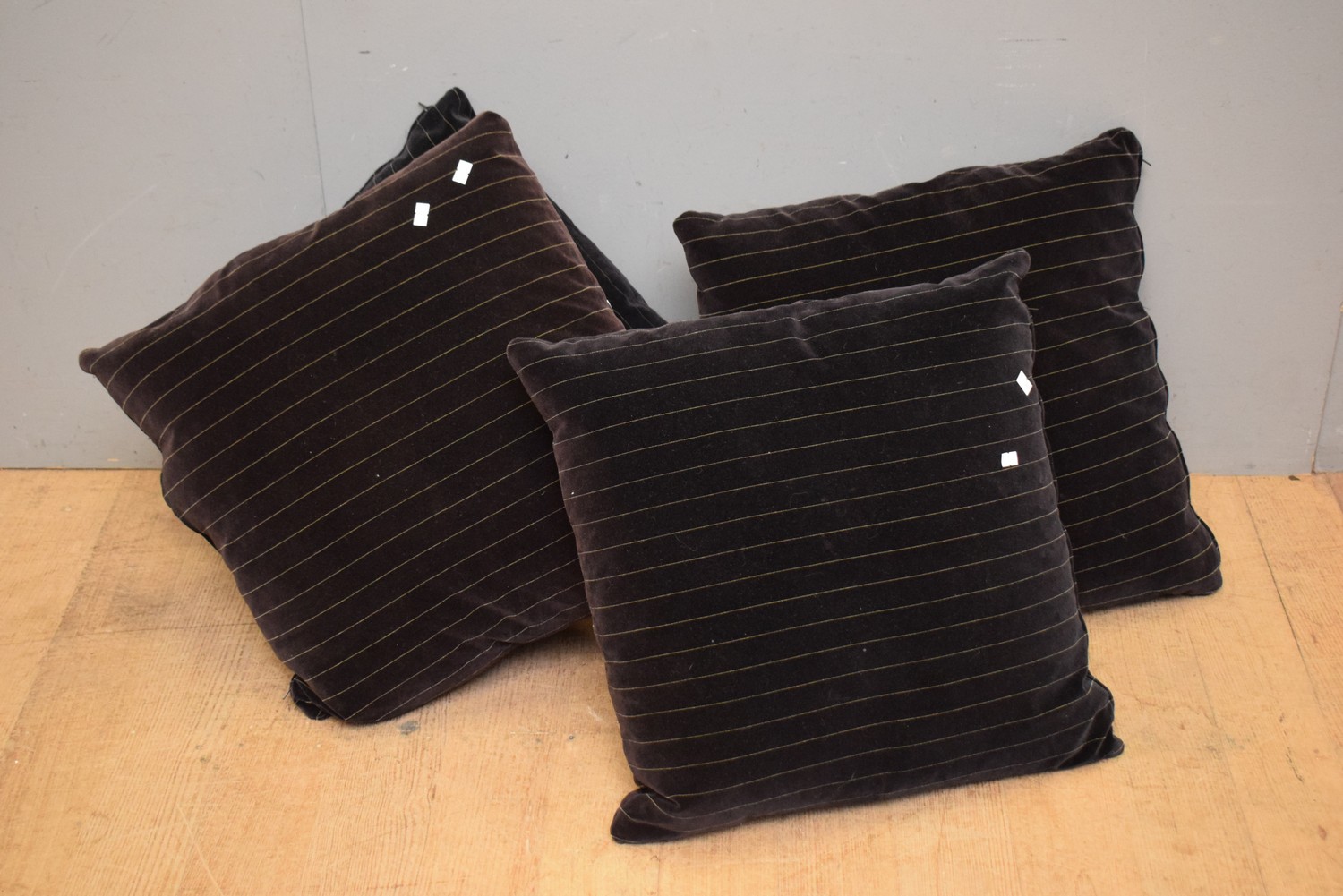 A COLLECTION OF FOUR RALPH LAUREN FABRIC CUSHIONS (A/F STAINED) (LEONARD JOEL DELIVERY SIZE: SMALL)