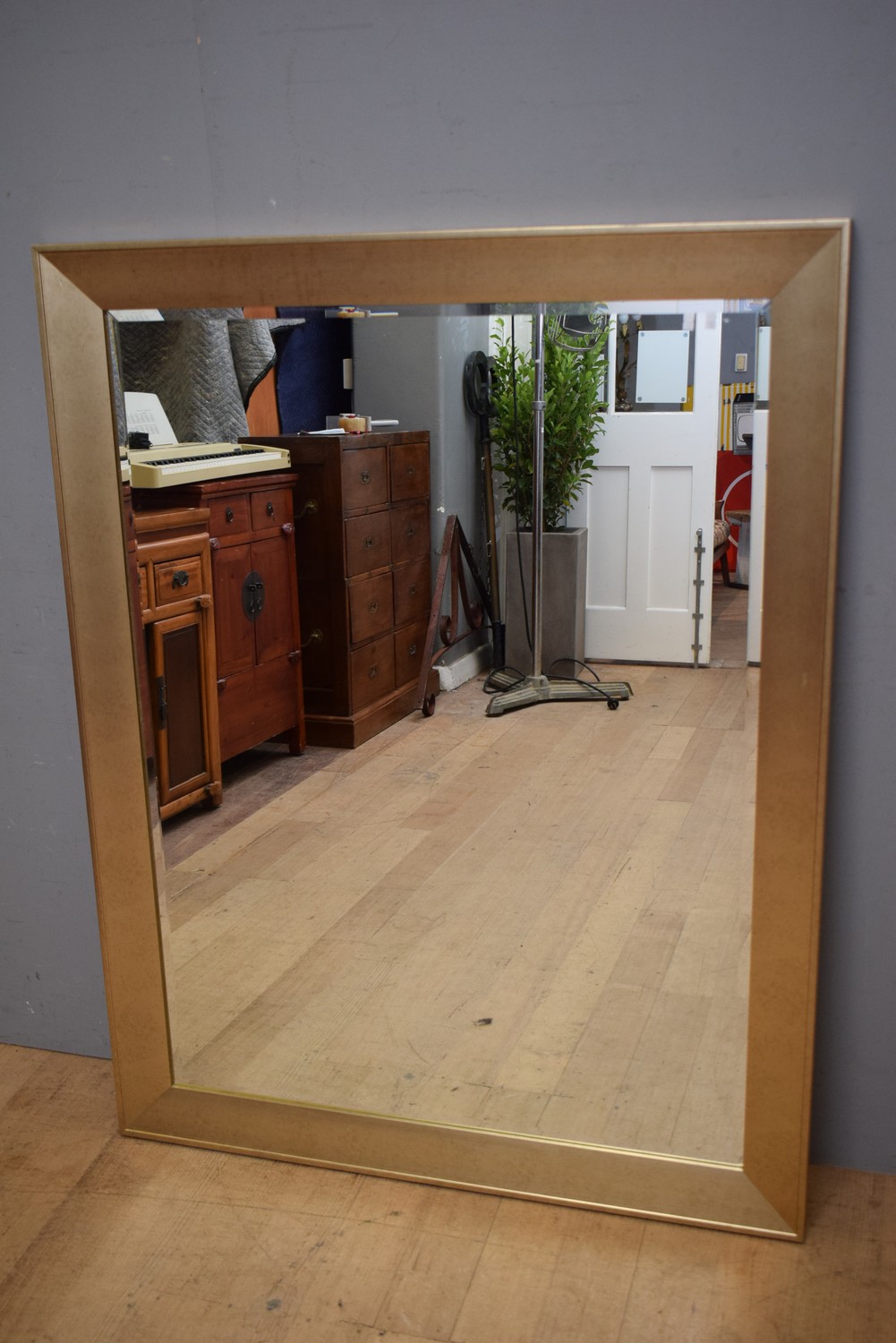 A CONTEMPORARY GILT EFFECT MIRROR (A/F) (137H X 106W CM) (LEONARD JOEL DELIVERY SIZE: MEDIUM)