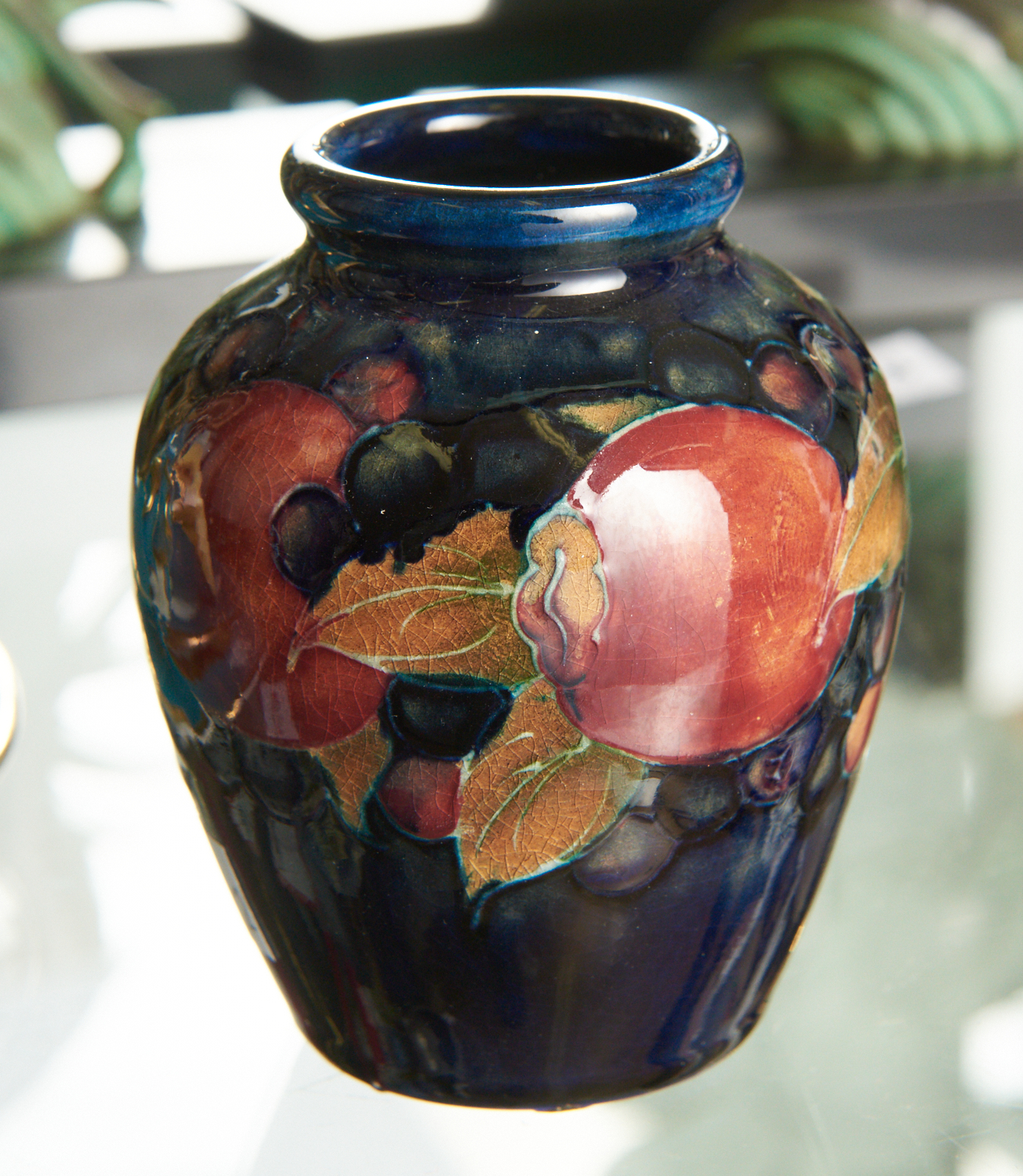 A MINIATURE MOORCROFT POMEGRANATE VASE, H.9CM, LEONARD JOEL LOCAL DELIVERY SIZE: SMALL