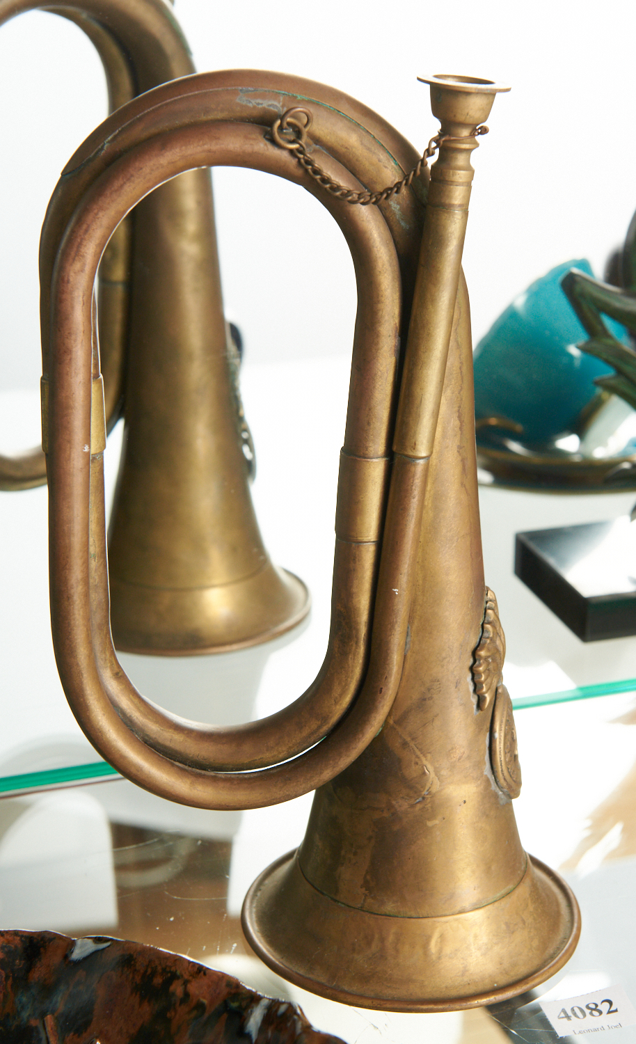 A WWI BUGLE, ROYAL WELSH FUSILIERS, LEONARD JOEL LOCAL DELIVERY SIZE: SMALL