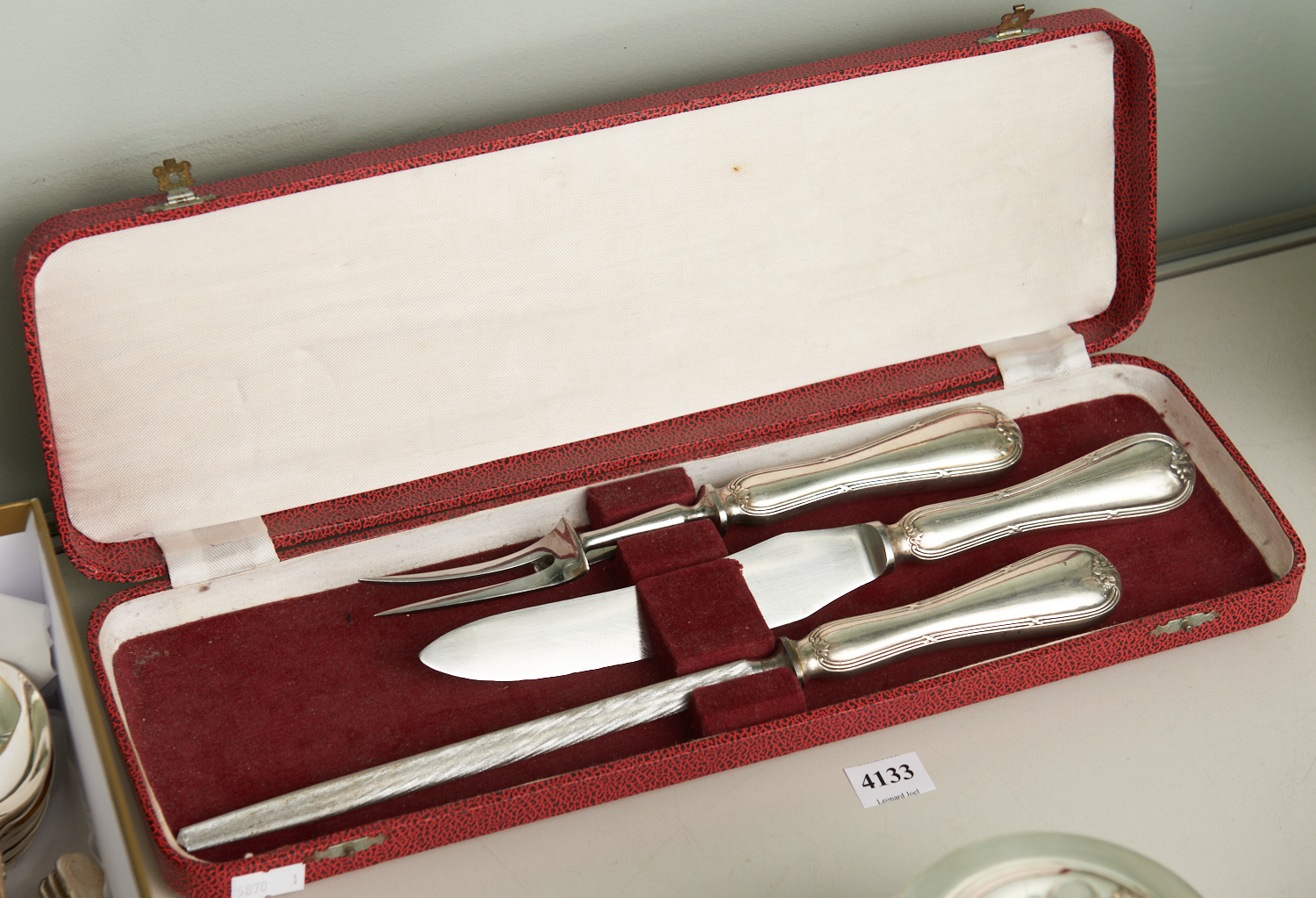 A CASED THREE PIECE CARVING SET, LEONARD JOEL LOCAL DELIVERY SIZE: SMALL