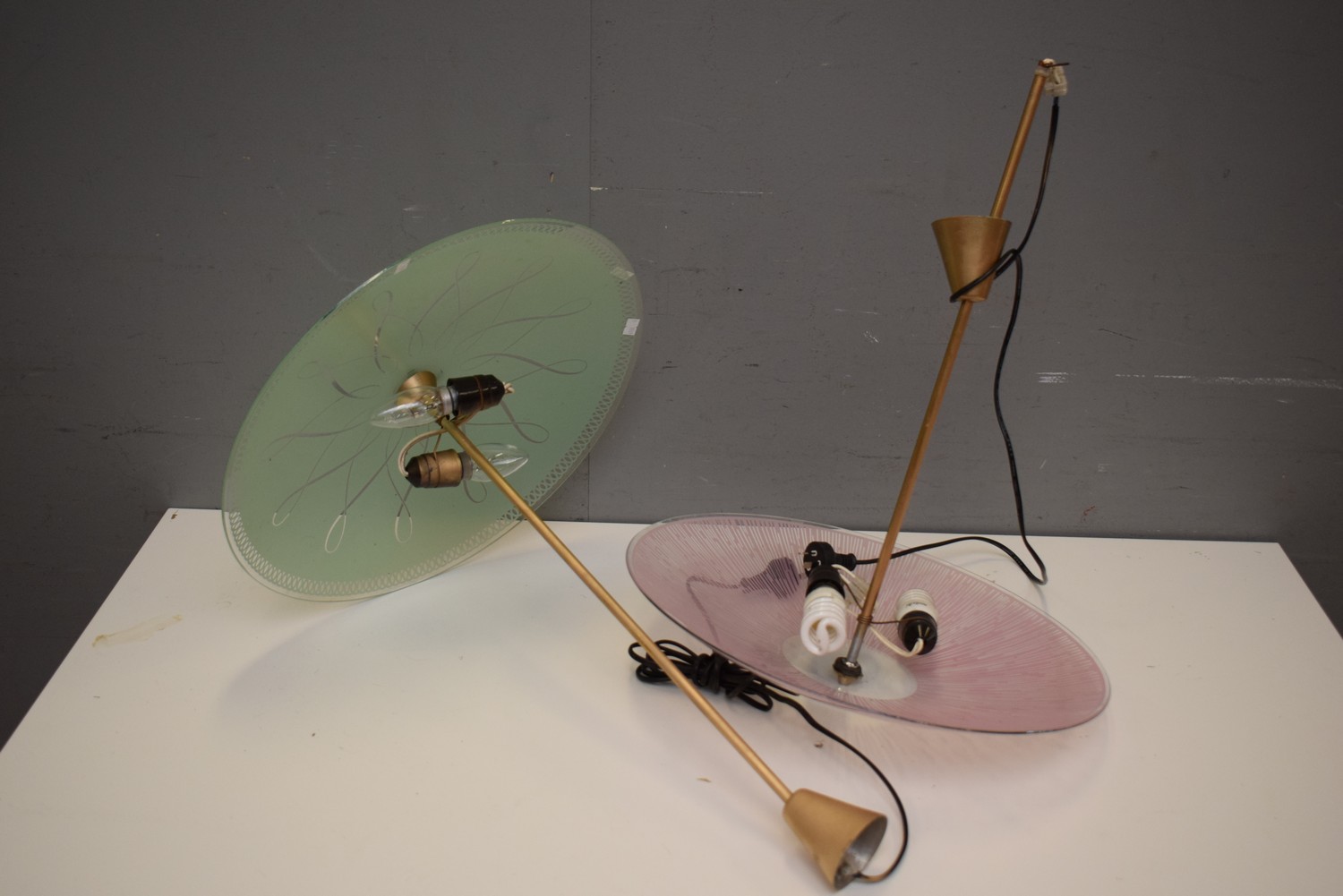 TWO GLASS MID-CENTURY LIGHTS (REWIRED) (44D CM) (LEONARD JOEL DELIVERY SIZE: MEDIUM)