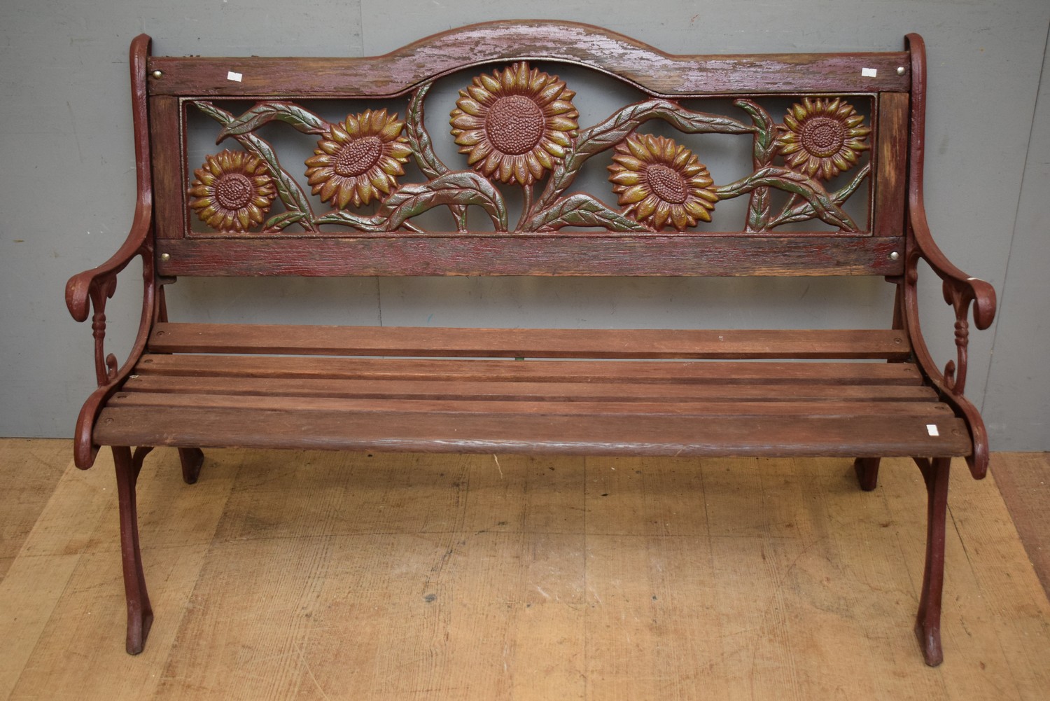 A CAST IRON OUTDOOR BENCH ( 83H X 127W X 60D CM) (PLEASE NOTE THIS HEAVY ITEM MUST BE REMOVED BY CARRIERS AT THE CUSTOMER'S EXPENSE. LEONARD JOEL STAFF CANNOT ASSIST CARRYING THIS ITEM) (X-LARGE ITEM)