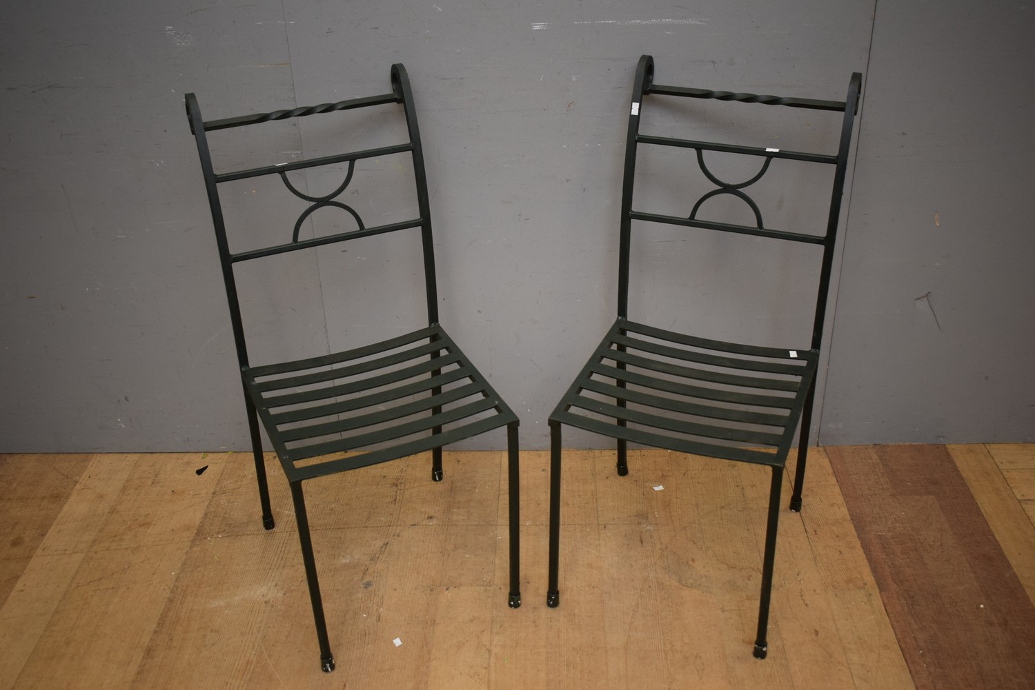A PAIR OF WROUGHT IRON OUTDOOR CHAIRS (93H x 40W x 54D CM) (LEONARD JOEL DELIVERY SIZE: LARGE)