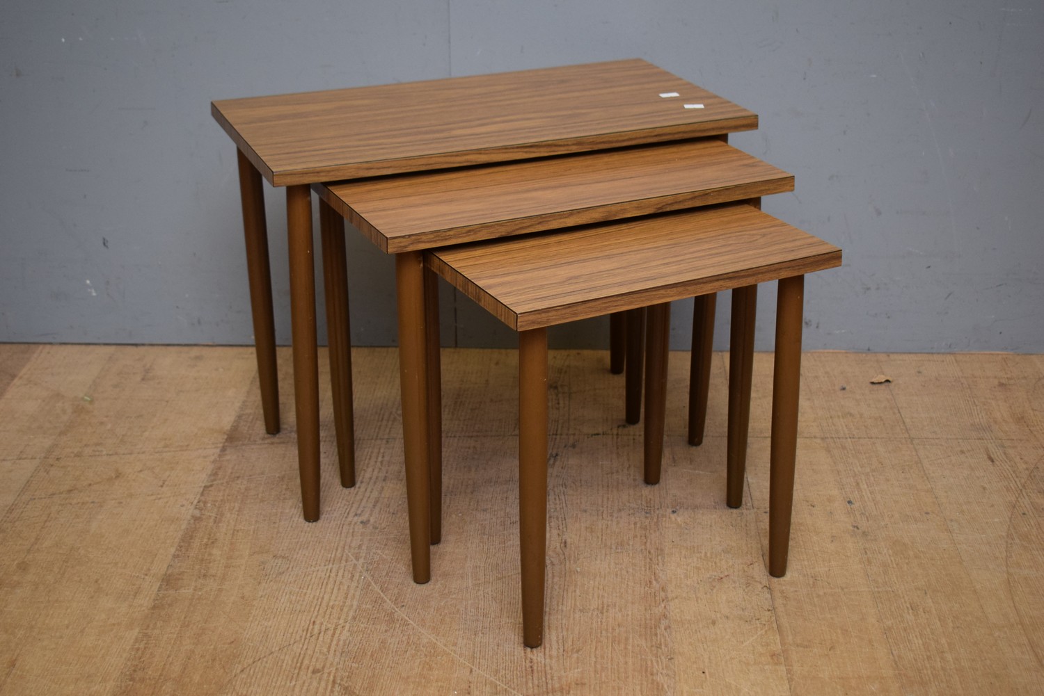 A NEST OF THREE LAMINATE TABLES (43H X 56W X 30D CM) (LEONARD JOEL DELIVERY SIZE: MEDIUM)