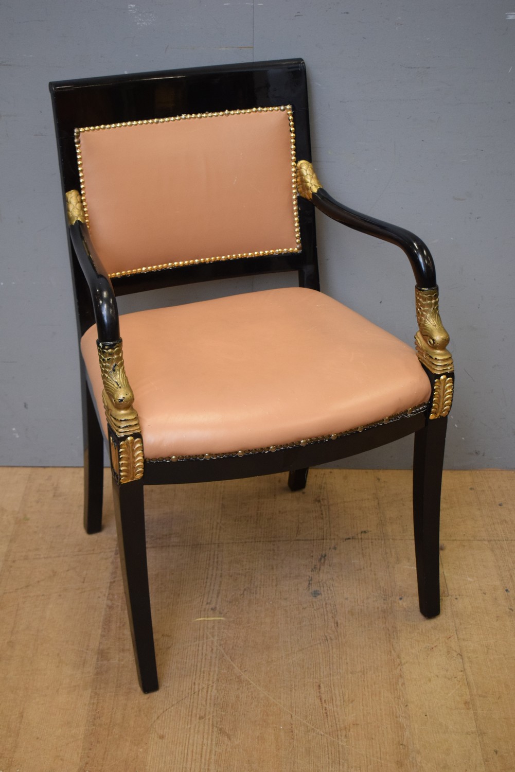 AN EBONISED EMPIRE STYLE CHAIR WITH CARVED DOLPHIN MOTIF (H91 X W59 X D58 CM) (LEONARD JOEL DELIVERY SIZE: LARGE)