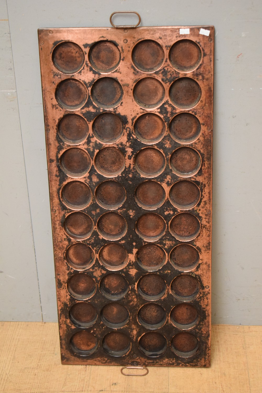 A VERY LARGE FRENCH COPPER PIE TRAY (92H X 41W CM) (LEONARD JOEL DELIVERY SIZE: MEDIUM)