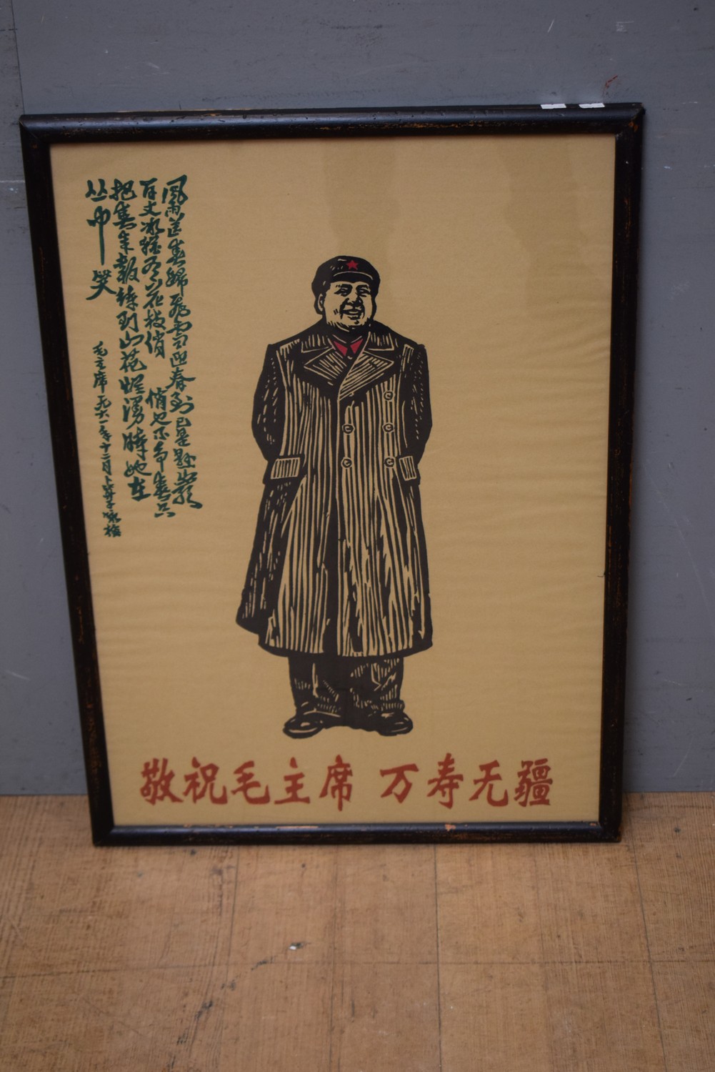A VINTAGE CHINESE PROPAGANDA POSTER OF MAN IN VINTAGE FRAME ( 81H X 57W CM) (LEONARD JOEL DELIVERY SIZE: MEDIUM)