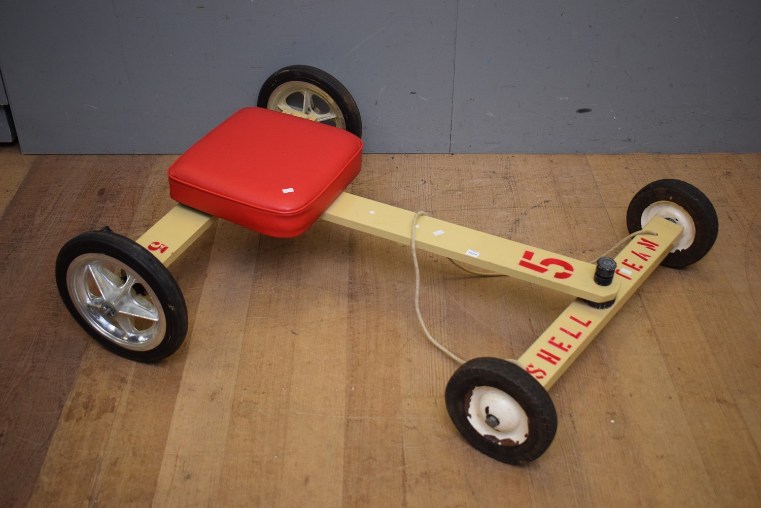 A VINTAGE 'SHELL TEAM' BILLY CART WITH MAG WHEELS (27H x 107W x 84D CM) (LEONARD JOEL DELIVERY SIZE: MEDIUM)