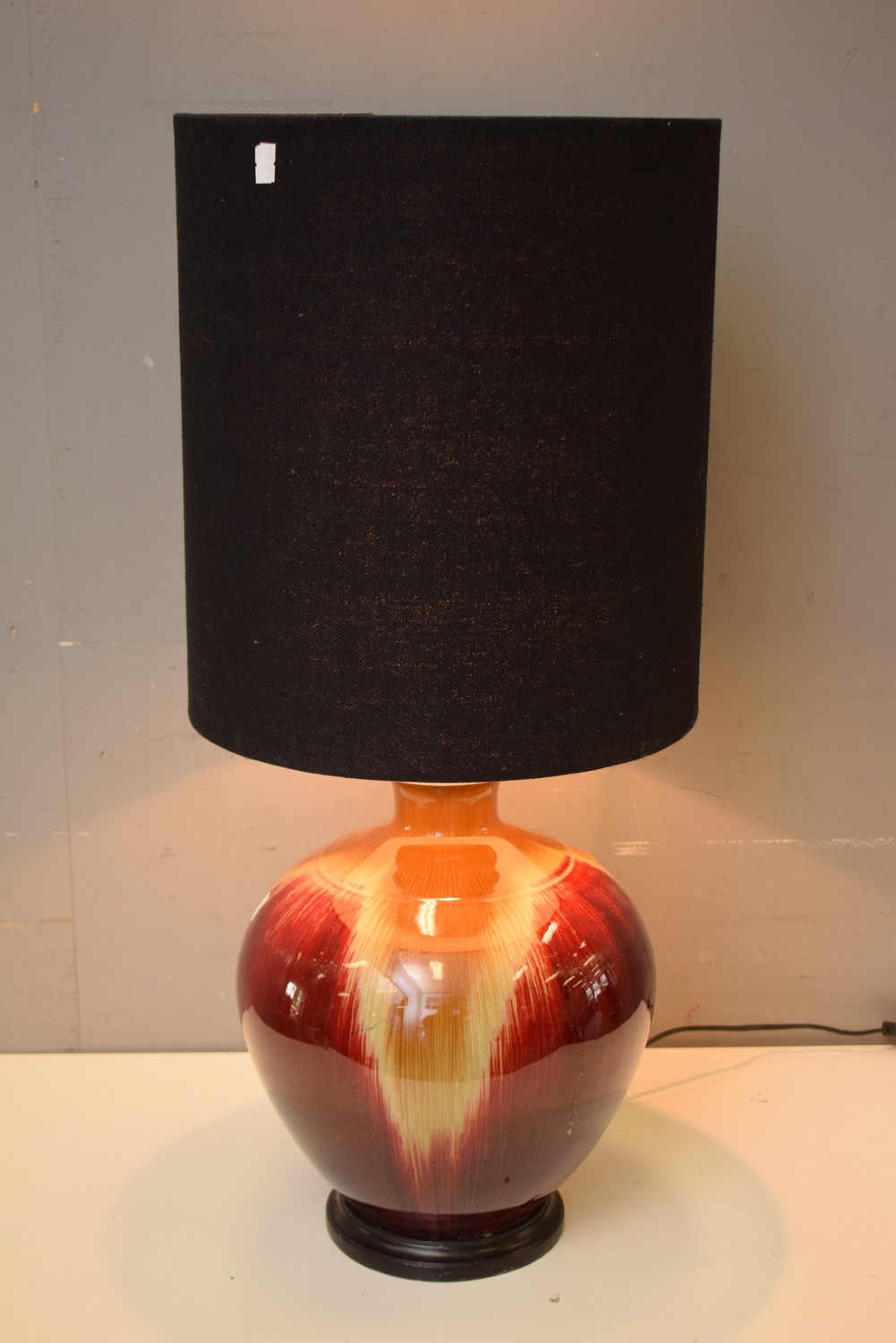 A LARGE RICHLY GLAZED CERAMIC TABLE LAMP ( 80H CM) (LEONARD JOEL DELIVERY SIZE: MEDIUM)