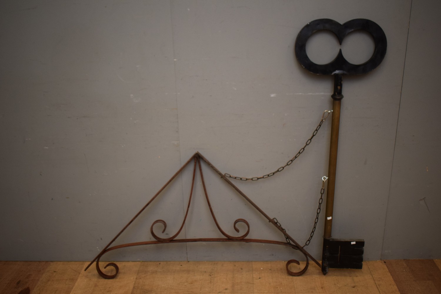 A VINTAGE LOCKSMITH BRASS KEY ADVERTISING HANGING SHOP DISPLAY (128W CM) ( 108H X 50W X 52D CM) (LEONARD JOEL DELIVERY SIZE: LARGE)