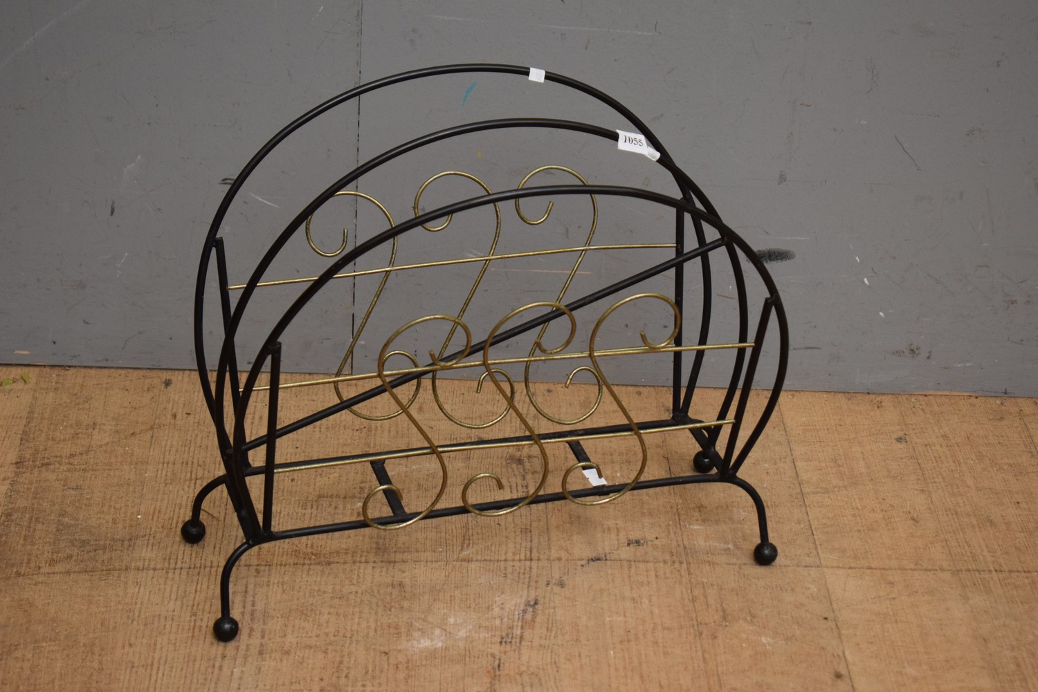 A 1960S BLACK AND GOLD METAL MAGAGZINE RACK (36H x 45W x 23D CM) (LEONARD JOEL DELIVERY SIZE: MEDIUM)