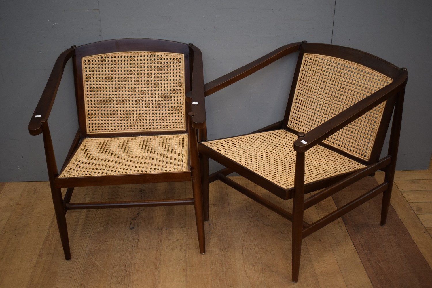 A PAIR OF TEAK AND RATTAN SIDE CHAIRS (H77 X W66 X D72 CM) (LEONARD JOEL DELIVERY SIZE: LARGE)